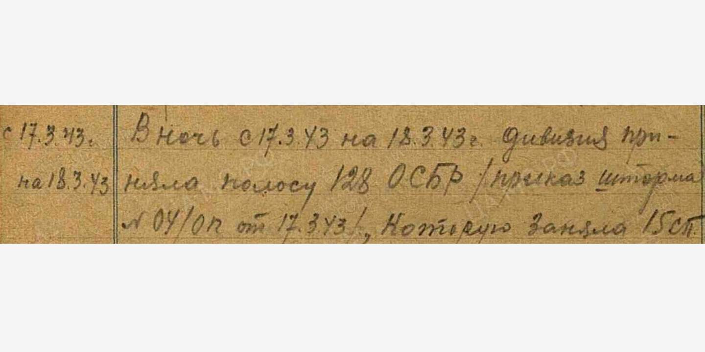 На рассвете 19 марта 1943 года мнимое спокойствие было нарушено — с первыми лучами солнца немецкая артиллерия обрушила на советские позиции град снарядов. Мощная артподготовка длилась полтора часа, что яснее ясного говорило бывалым солдатам — сегодня будет бой, и бой жестокий. Укрываясь от огня, бойцы остервенело долбили промёрзшую за ночь землю сапёрными лопатами, спешно углубляя окопы и ходы сообщения, доводя огневые позиции.