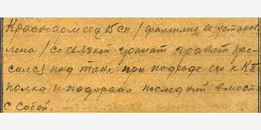 Подвиг неизвестных бойцов зафиксировал ЖБД 49-й дивизии. Немцы, занявшие лощину северо-западнее Крестьянской Горы, подтягивали силы для решающей атаки. Колонна автомашин с пехотой противника под охранением танков двигалась к району сосредоточения немцев. Грузовики проезжали мимо разбитых и, казалось, безжизненных советских окопов, когда те внезапно «ожили».