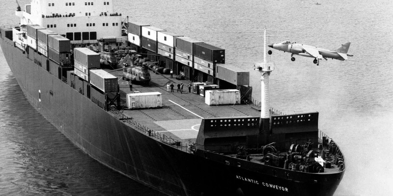 Контейнеровоз «Атлантик конвейор», переоборудованный в носитель авиации.
