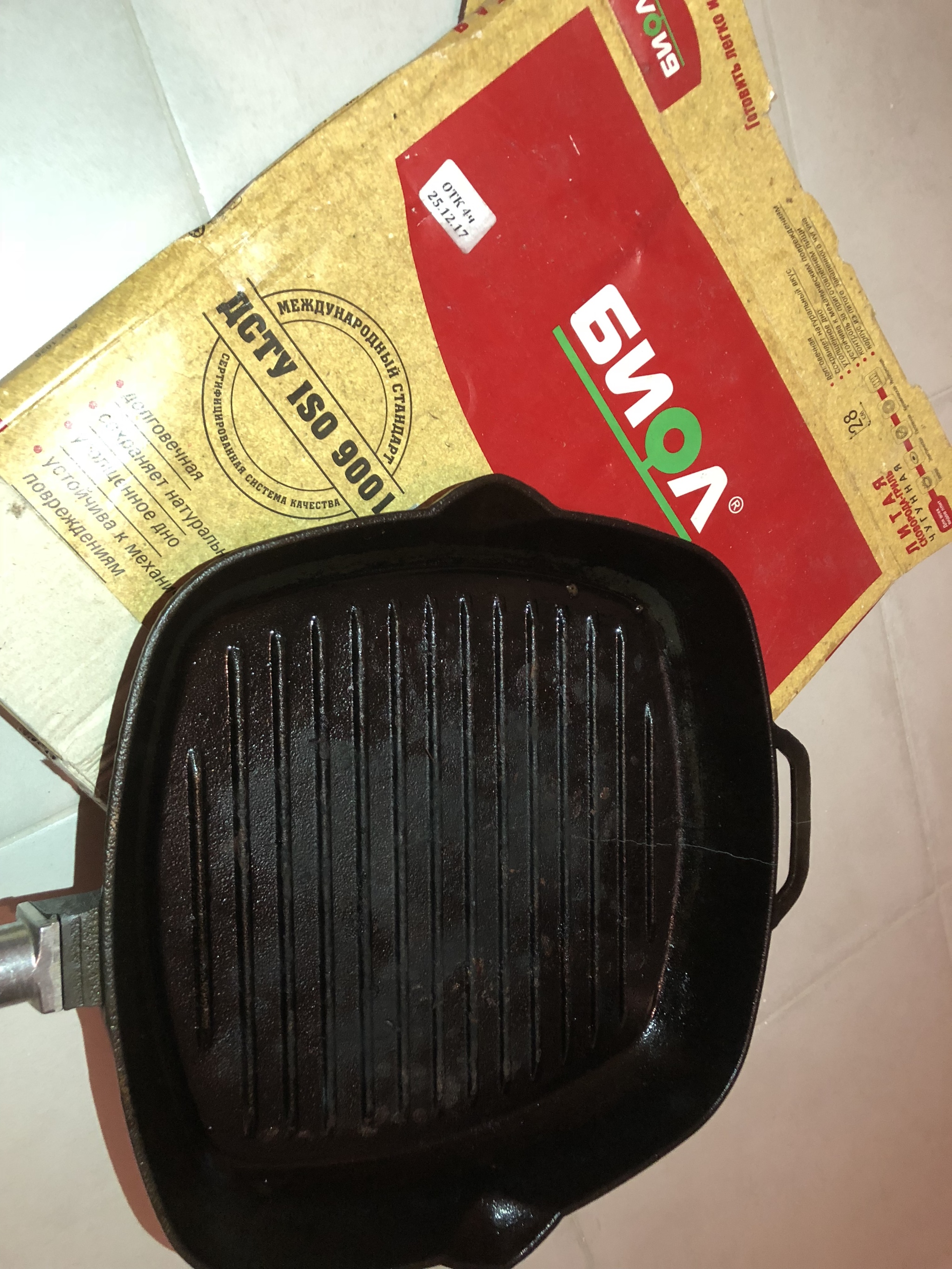 Сегодня готовил мясо на любимой сковороде гриль, купленной в 2018 году. Как вдруг раздался щелчок и, что я вижу... моя сковородка лопнула((((( как такое может случиться? Она же чугунная.