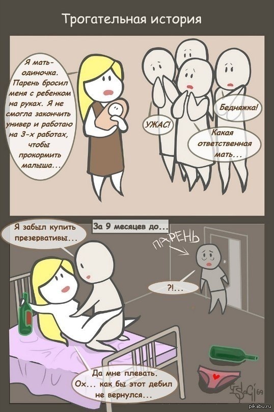 Но, блин, про алименты вообще жесть, что в голове вообще происходит? Хоть бы думали, прежде, чем писать. Ребенок это огромные затраты, а в большинстве случаев алименты не покрывают даже 1/3 этих затрат, потому что у нас никто не зарабатывает так много, чтобы процент с их зарплаты мог покрыть расходы на содержание ребенка.