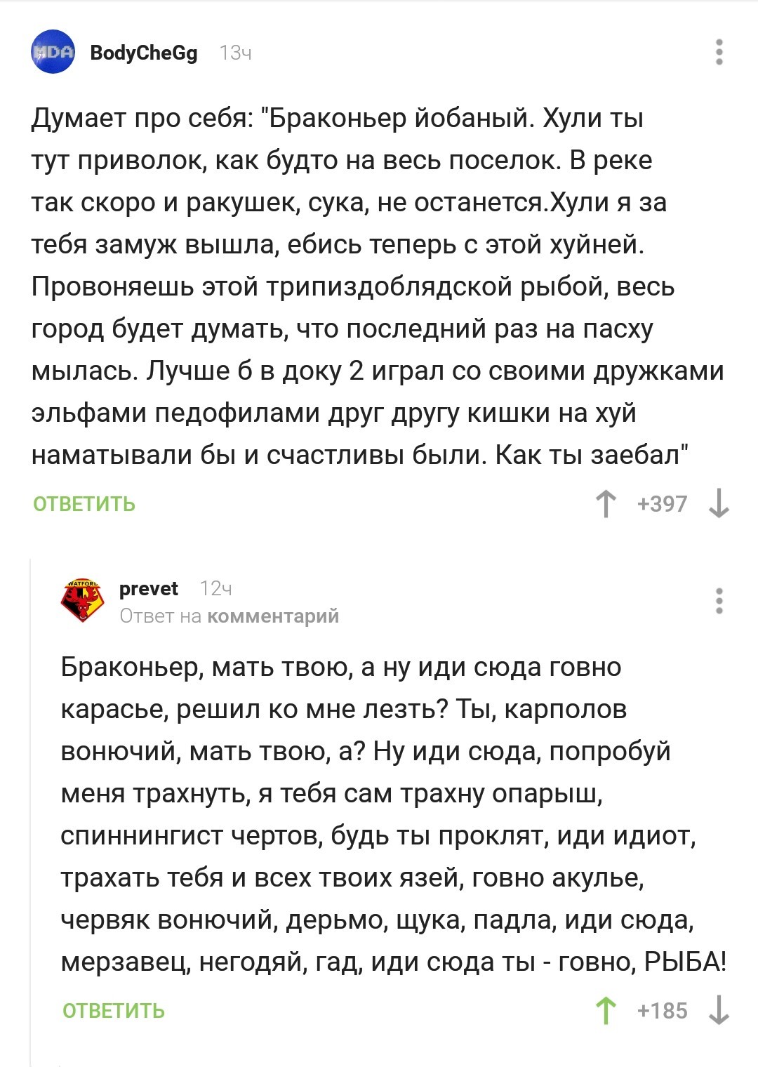37 AR.Romanoff 7 лет назад Браконьер, мать твою! #comment_125165823 Рыбалка Комментарии Ублюдок мать твою Мат Комментарии на Пикабу