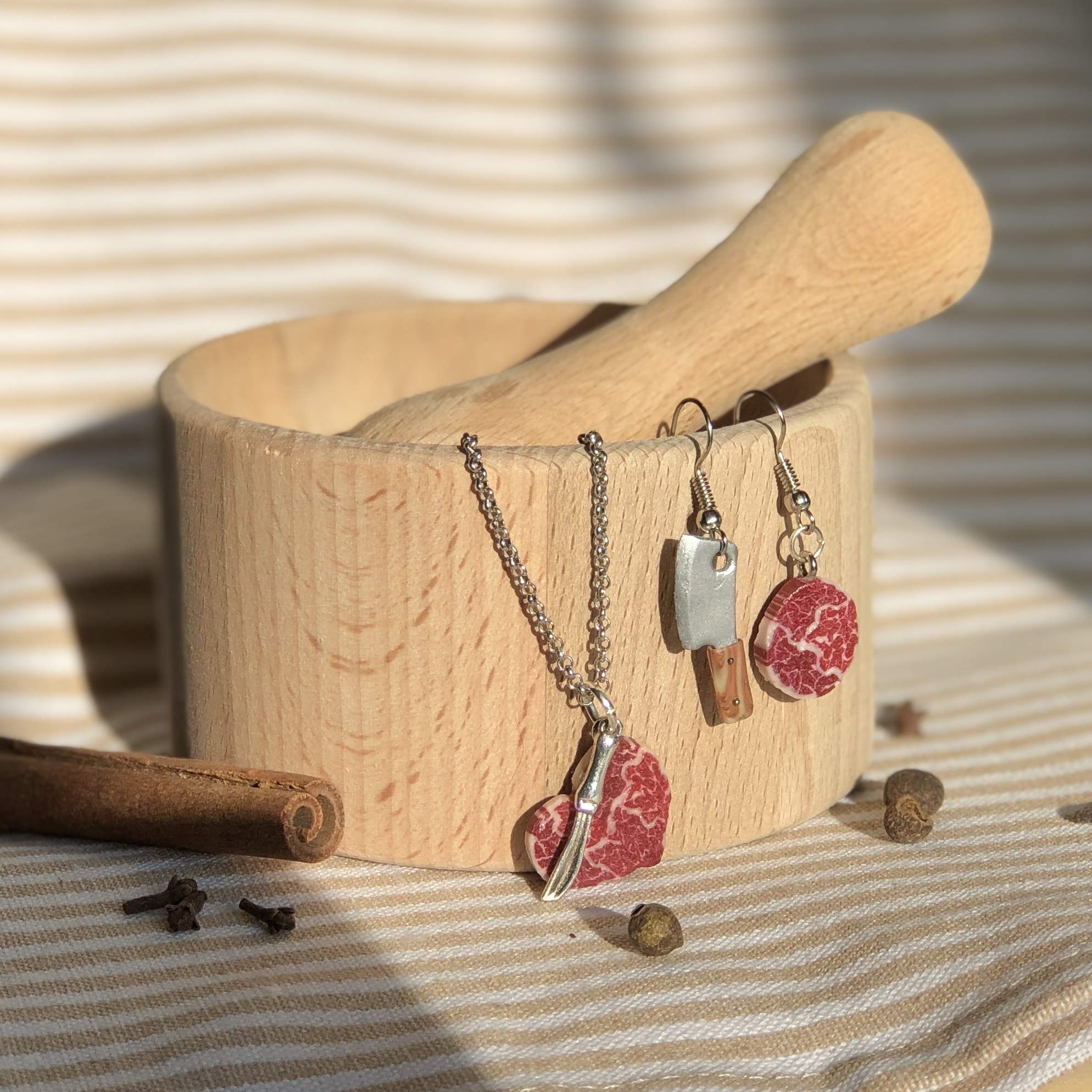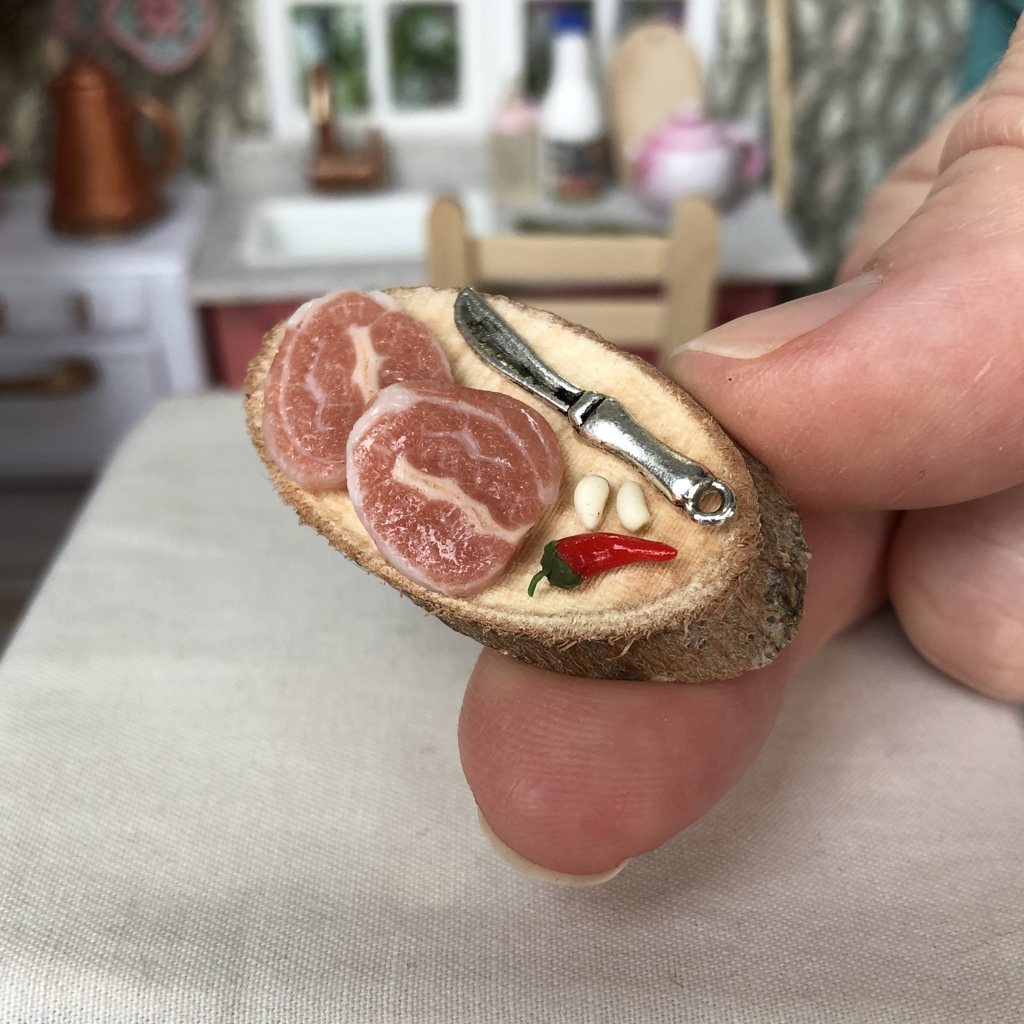 Шикарно, мяско и чесночок слопал бы не глядя! А вот ножик, может из-за серебристой поверхности выглядит не очень натурально, но это такое