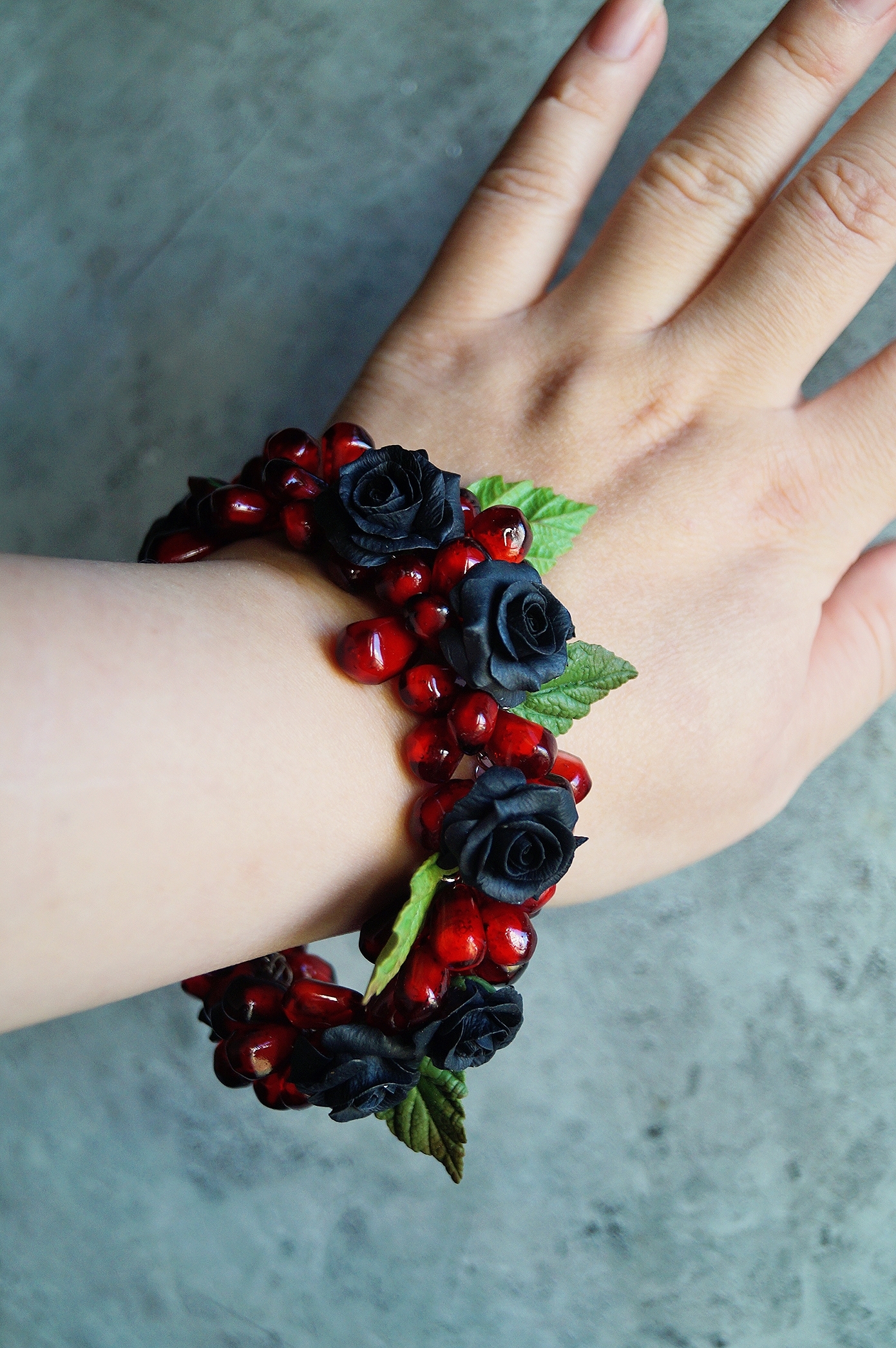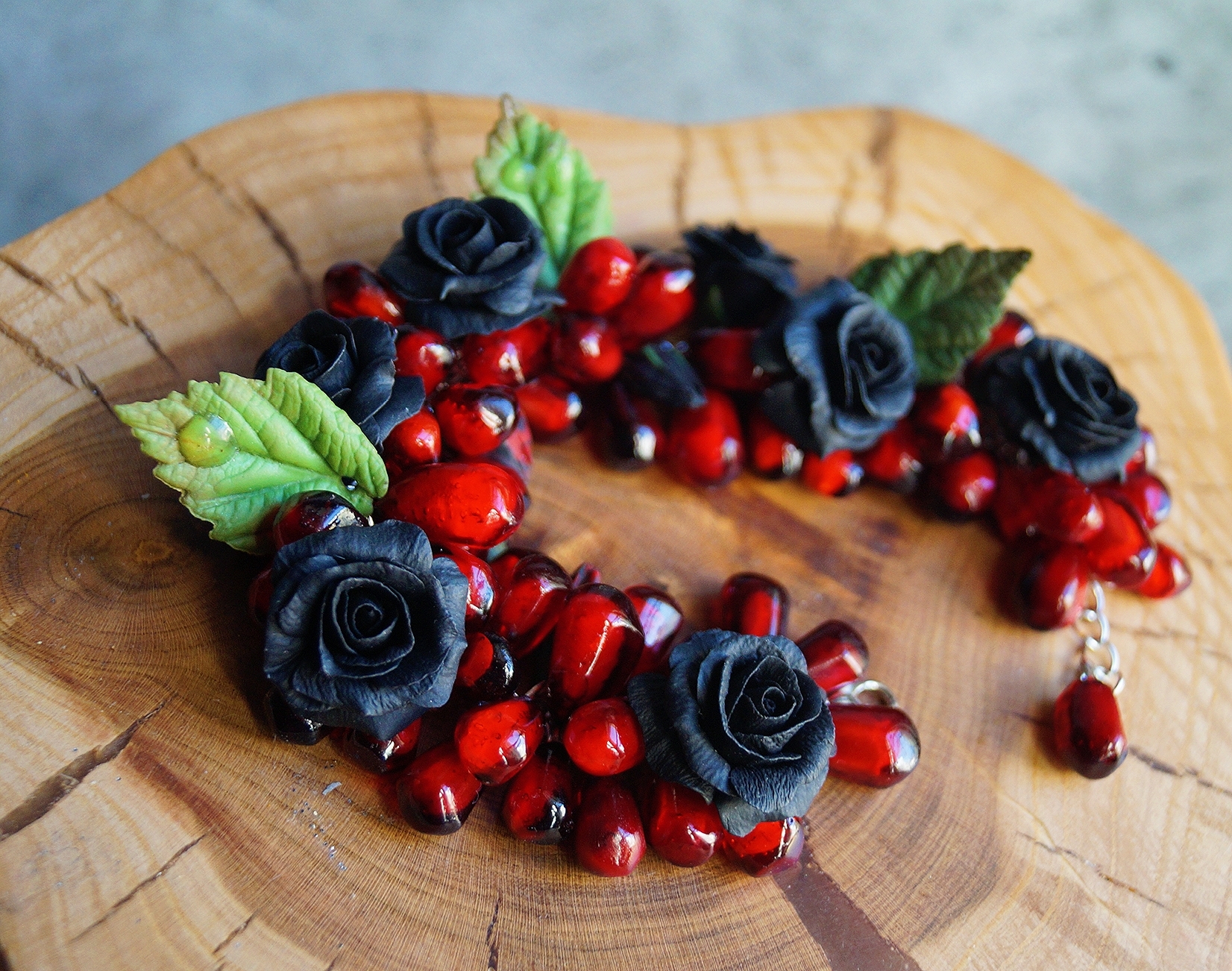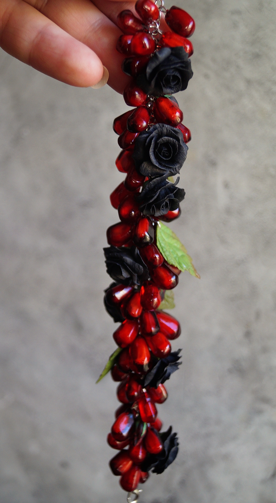 С гранатом из уф смолы и мини розочками из полимерной глины