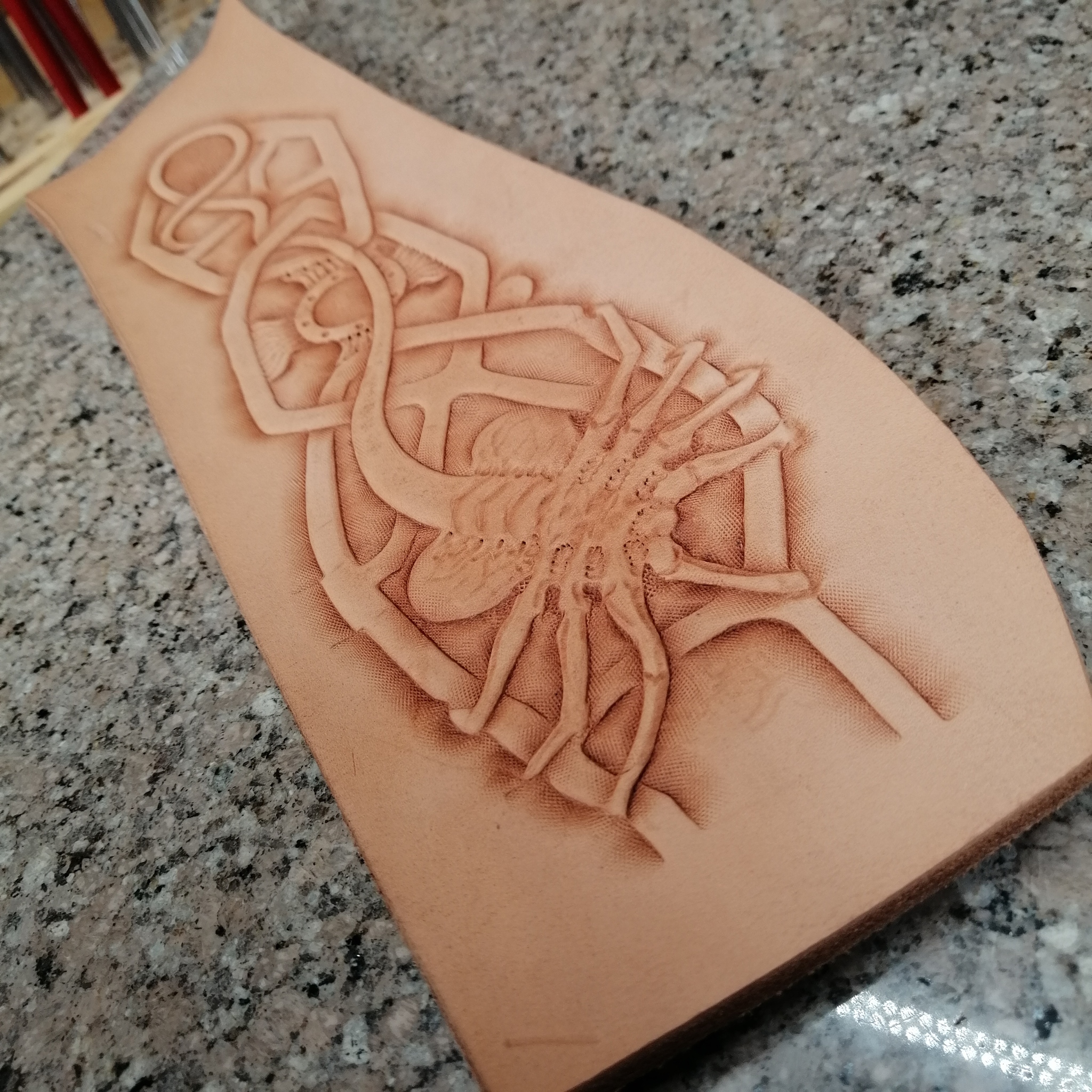 Кожа растительного дубления 3,8мм, штампы, кардины, антик, лак.