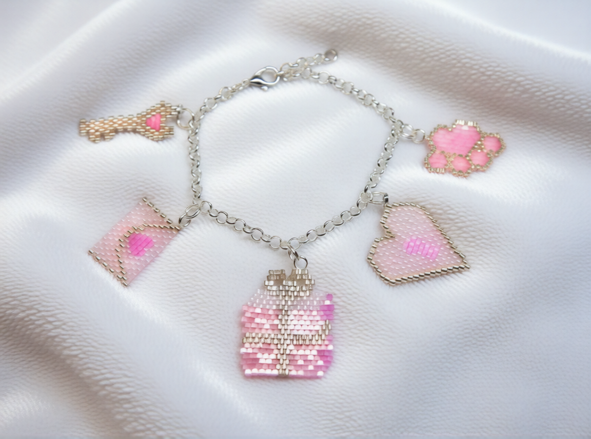 Браслет с подвесками к 14 февраля