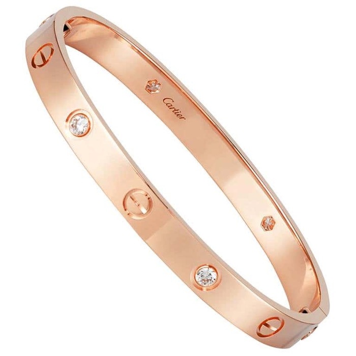 Браслет "Любовь" из розового золота с четырьмя бриллиантами от Cartier, 2018 годС любым ювелирным украшением, сделанным историческим домом, первое, на что нужно обратить внимание, - это используемые материалы.