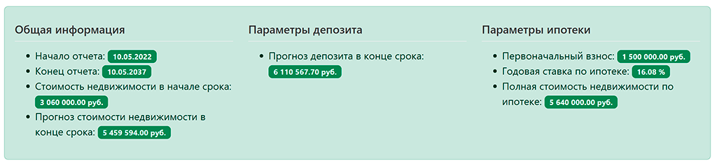 Это вариант, если рассматривать квартиру как инвестиционную. В данном варианте вклад выигрывает у ипотеки всего на 650 974 руб.