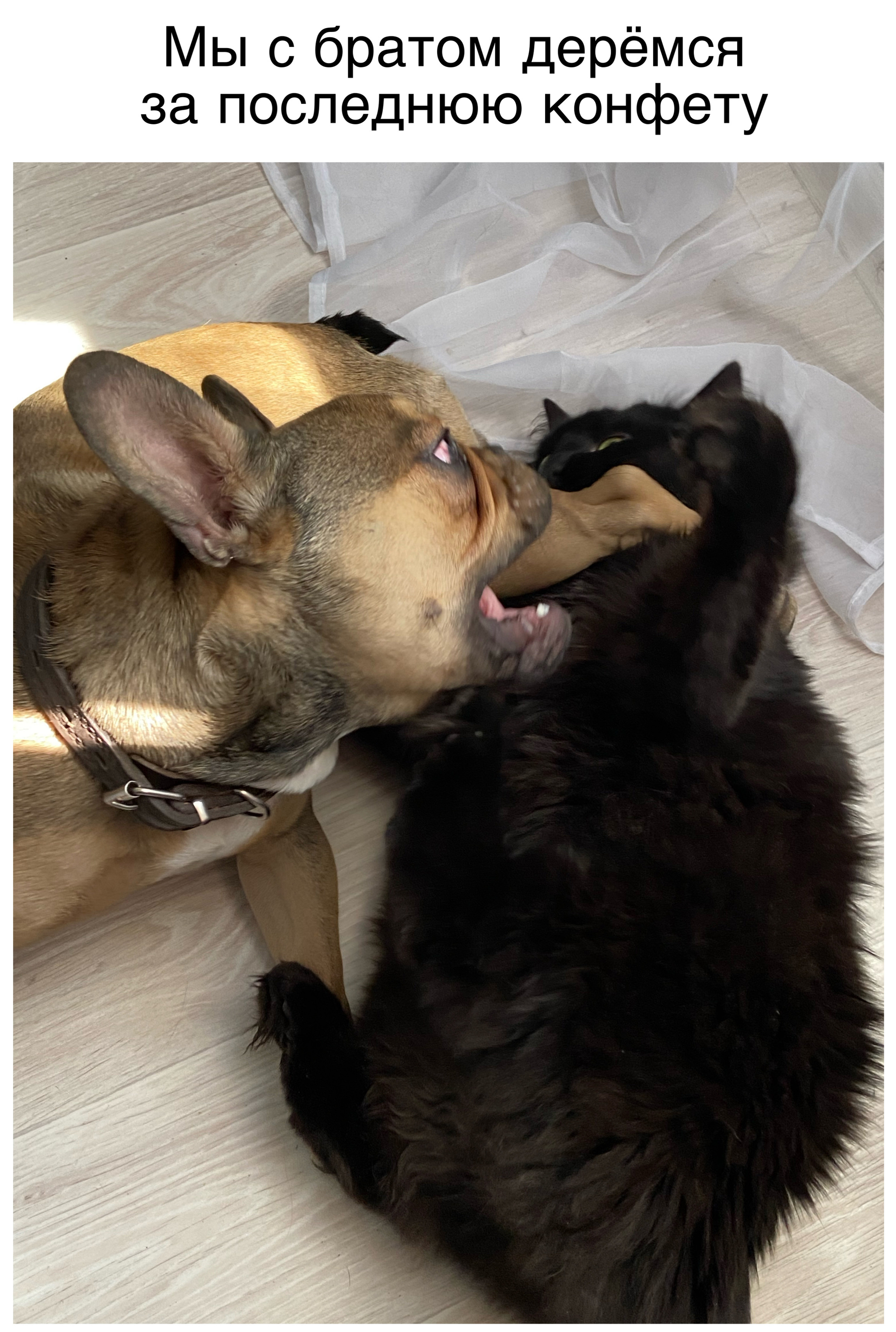 18 AnnieO Братско-сестринское 3 года назад [моё] Детство Семья Брат Драка Длиннопост Кот Собака Картинка с текстом Ещё 0
