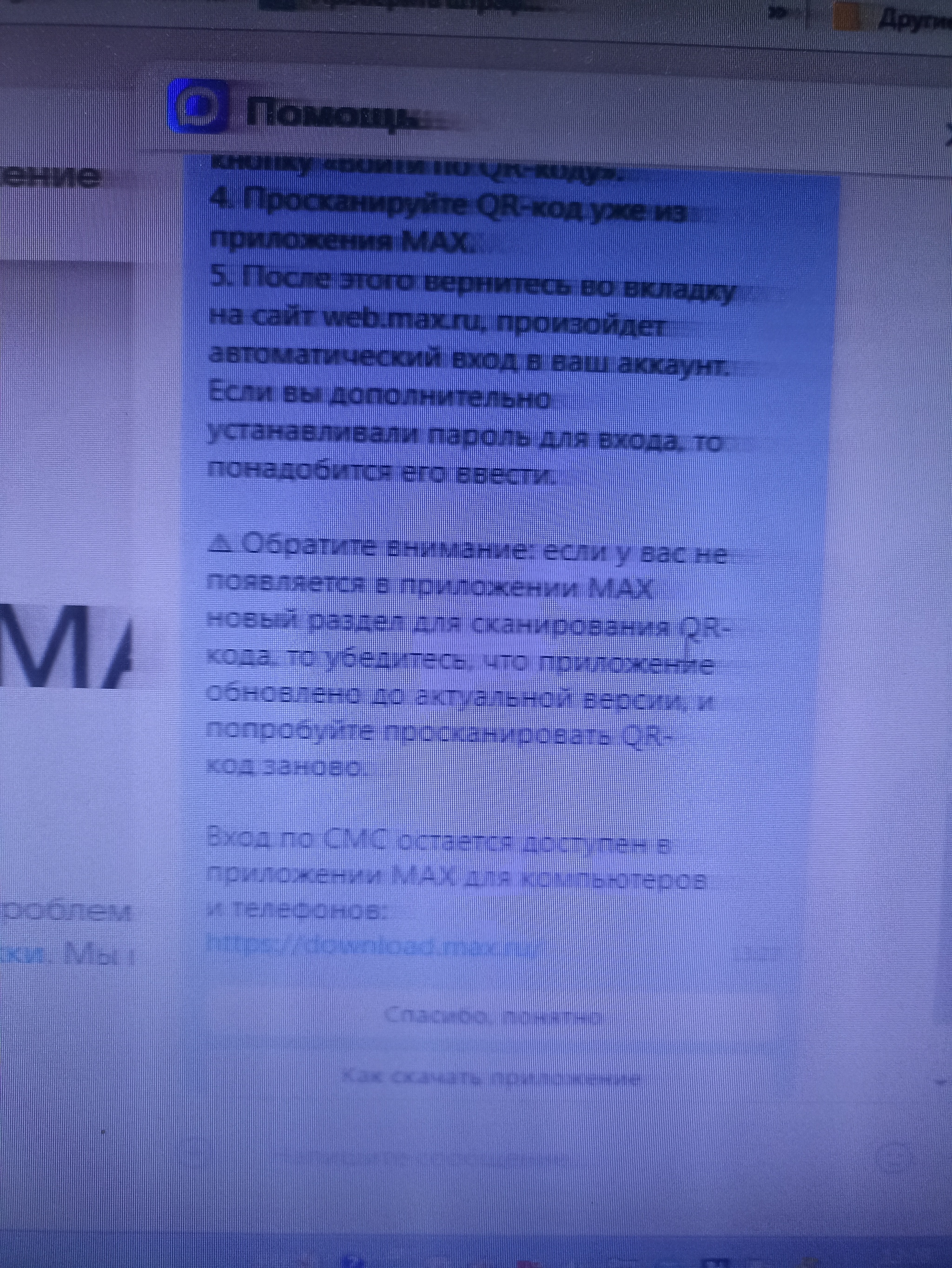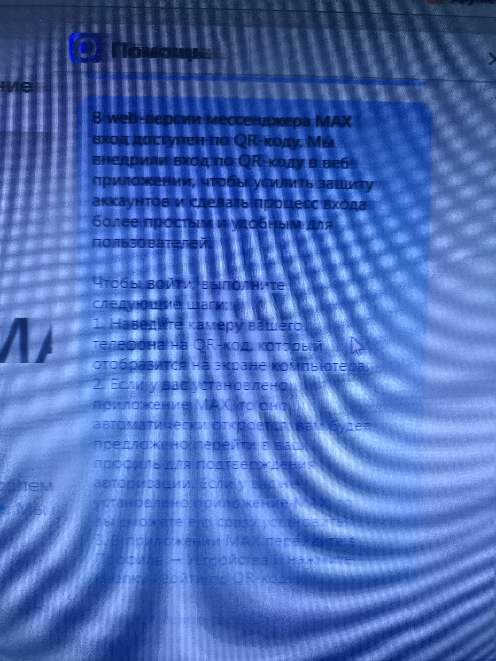 Сегодня на работе попыталась войти, как всегда, через браузер в max. Не получилось, вход в версию браузера только через приложение, нужно сканировать куар код на смартфон и через приложение на смартфоне подтверждать вход. У меня нет на смартфоне приложения и не будет. Считаю, что работодатель должен установить приложение для работы на рабочей технике. Без него я не могу зайти в чат и работать. Дома могу, на компе приложение есть. Думаю, что хотят всех поголовно привязать к приложению через личные смартфоны. А мне оно только для работы, а работа - это не вся жизнь.