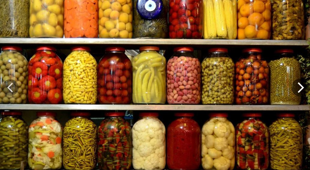 Внутри — миниатюрный мир: насыщенно-красные помидорки, огурчики, пряности, травы и зелень, аккуратно уложенные слоями, как в настоящей банке домашней консервации.