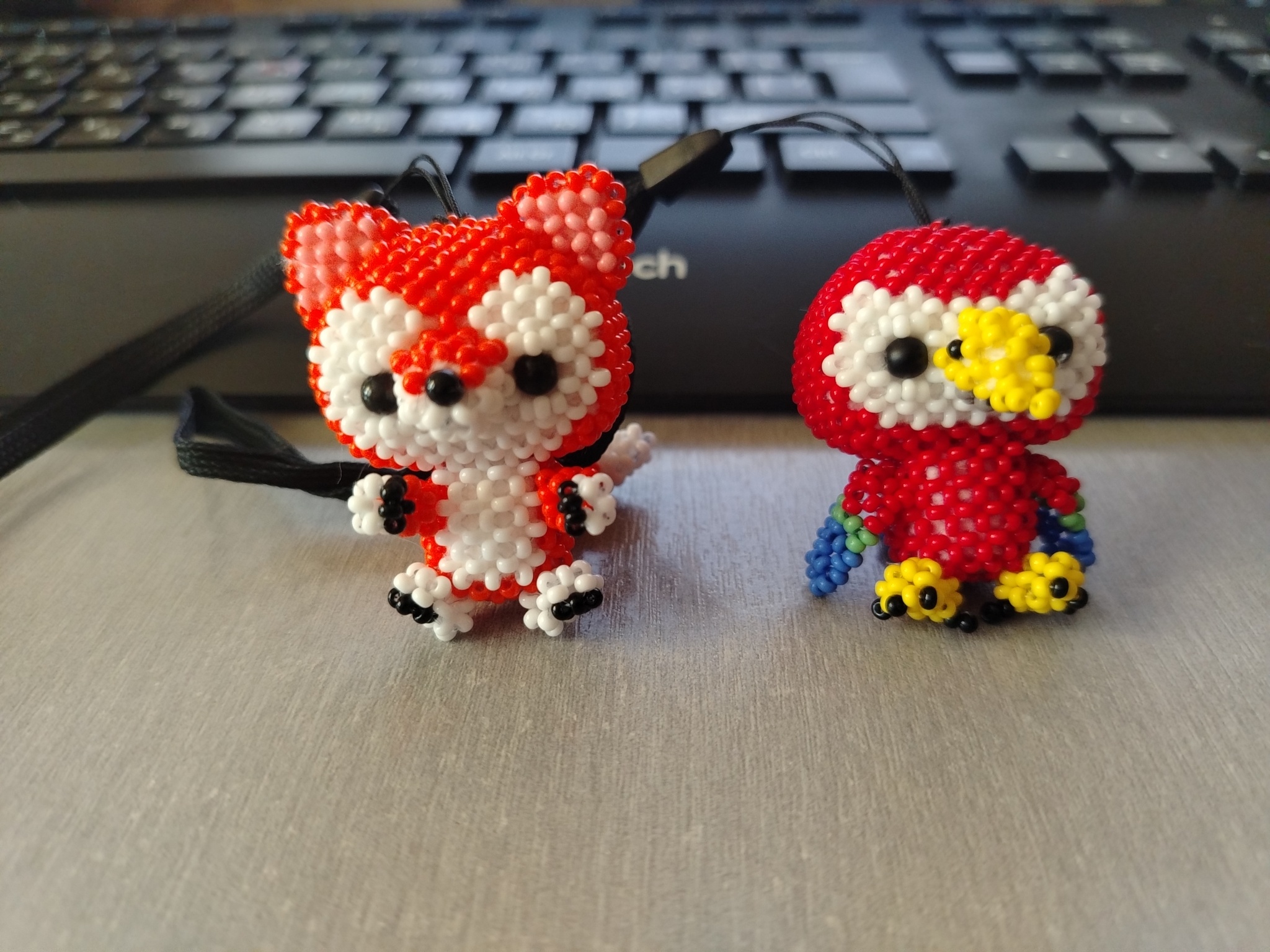 Всем привет, в этот раз решил сделать пару "ярких брелков", представляю вашему внимаю лисёнка и попугая ара.