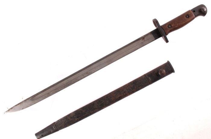 Чтобы компенсировать достаточно небольшую длину винтовки, надо было удлинить штык-нож. Его кожаный чехол крепился на ремне.