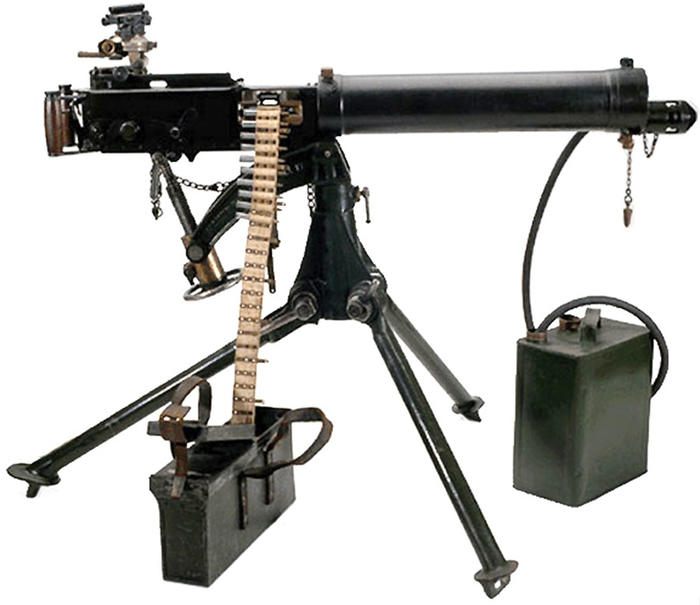 В 1912 г. на вооружение армии Великобритании поступили пулеметы Виккерса, которые очень быстро были признаны одним из наиболее страшных орудий той эпохи. Он имел скорострельность 450— 550 выстрелов в минуту, и пулеметчики использовали пулеметные ленты на 250 патронов калибра 303 (7,7 миллиметра).