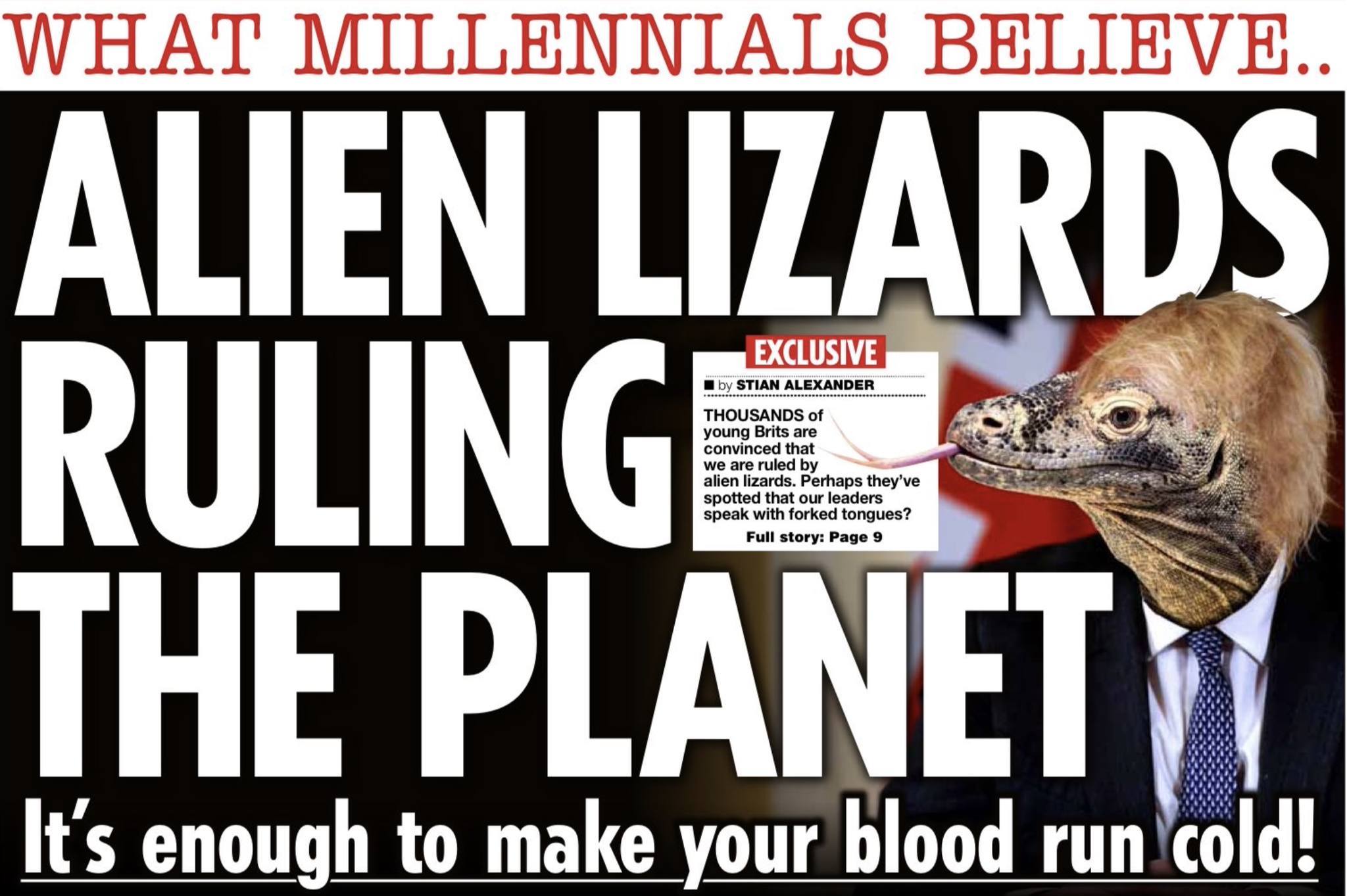 выявили, что 12% британцев в возрасте 24-35 лет уверены в том, что миром управляют ящерицы-пришельцы, в числе которых королевская семья и и президенты США.