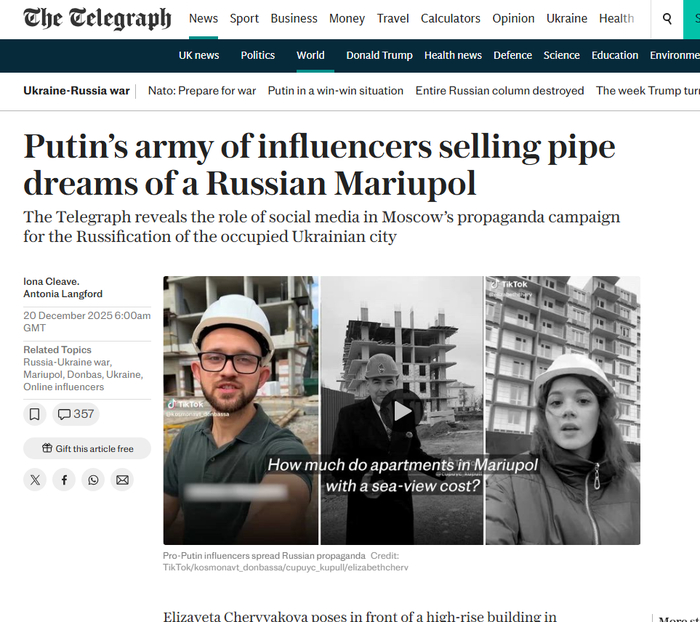Авторы уверяют, что некие "инфлюенсеры" якобы продвигают «русификацию», а Москва вложила миллиарды рублей в перестройку города «по российским лекалам». Видимо, по версии британских журналистов, раньше Мариуполь был застроен по каким-то особым украинским канонам.