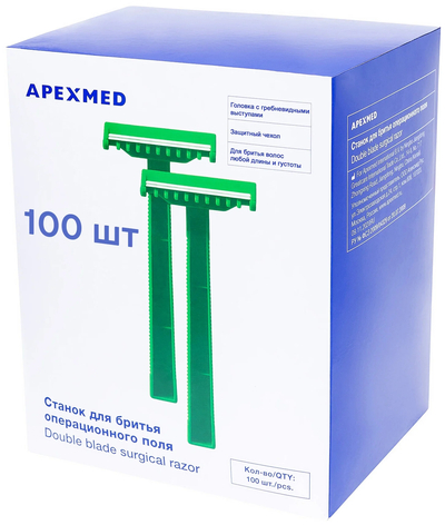 Станок для бритья 100 шт, с двумя лезвиями / с одним лезвием, Apexmed Apexmed