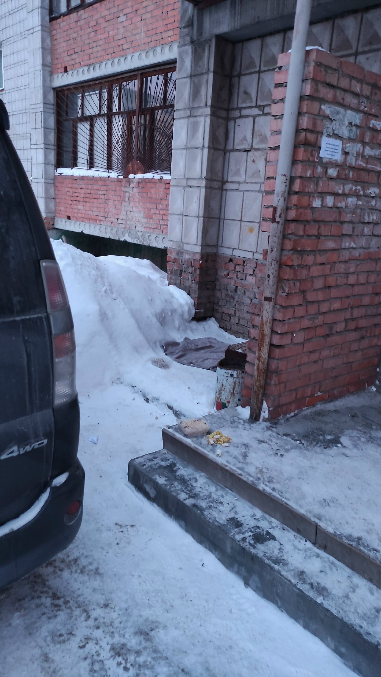 "Оно" свило новое собачье гнездо. Достаточно близко к моему дому. Просто на крыльце подъезда разложил кто-то свои миски. А сбоку от подъезда постелил свои тряпки в качестве лежанки. На фото не попало, но сразу же напротив подъезда находится детская площадка. Тот кто решил прикормить собак именно в этом месте явно хочет, чтобы собаки рано или поздно накинулись на кого-то из жильцов дома.