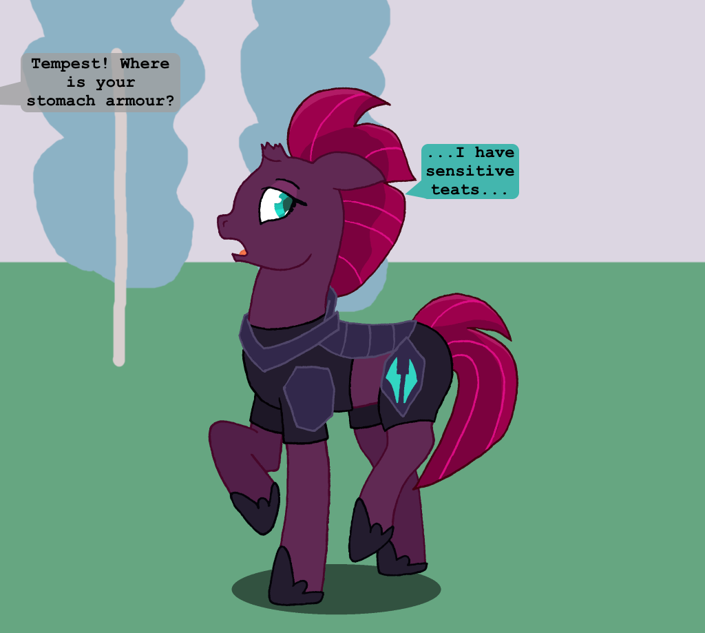 33 invalidmarkup My Little Pony Бронелифчик наоборот 7 лет назад - Темпест, почему у тебя пузико без защиты?- ... у меня чувствительное вымечко... Уважительная причина. :3Оригинал: https://derpibooru.org/1476824 My Little Pony Tempest Shadow MLP Edge Hakar-kerarmor