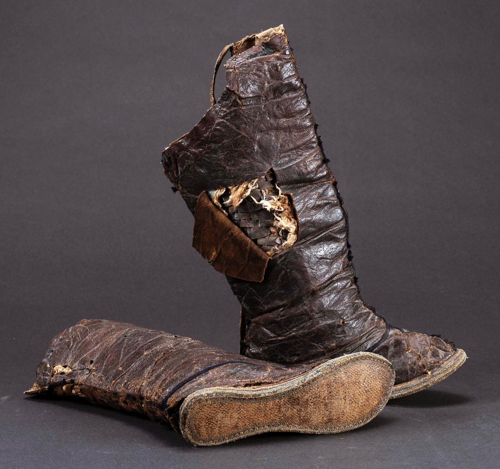 (Бронесапоги с нашитыми под кожу железными пластинами. Монголия, 15-16 века.)