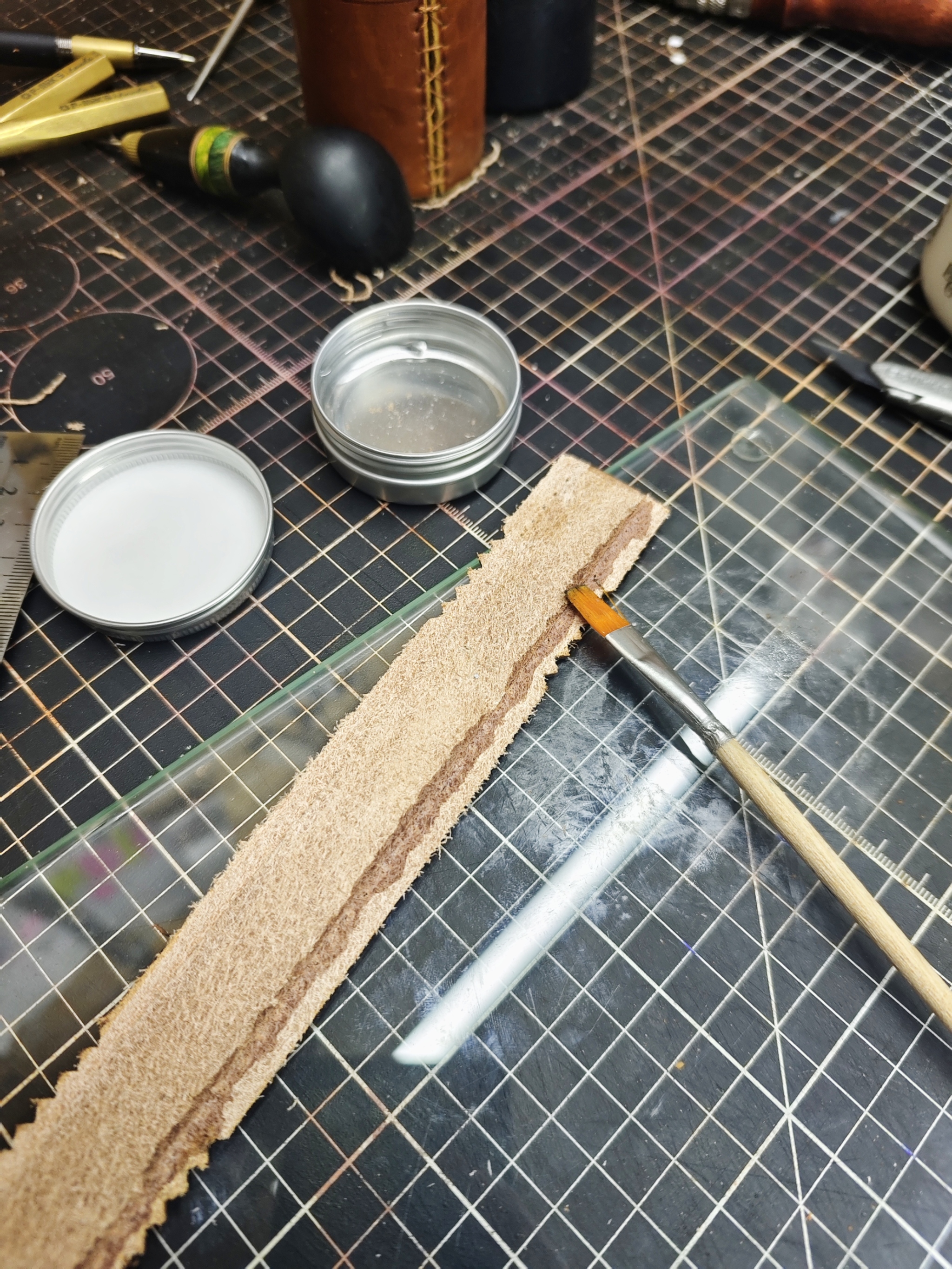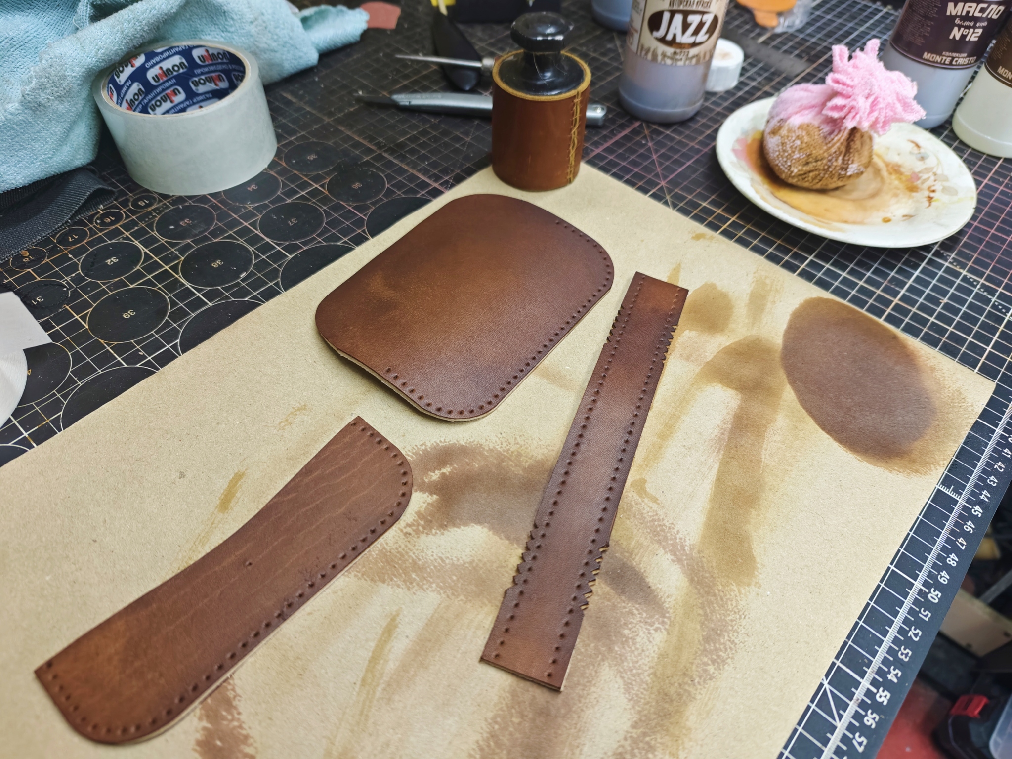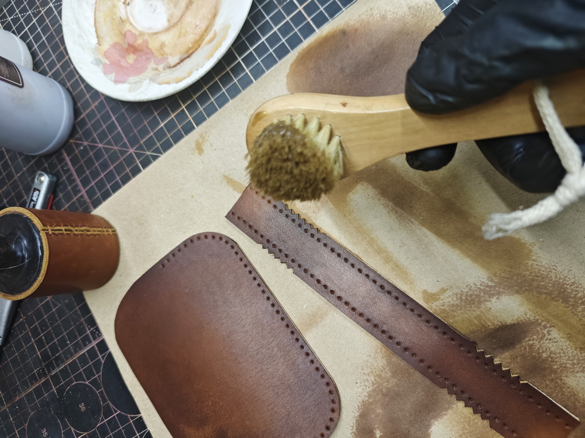 Кожа у меня некрашеная, соответственно ее необходимо покрасить и прожировать. Жировка необходима, чтобы краска распределилась равномерно и не пересушила кожу.