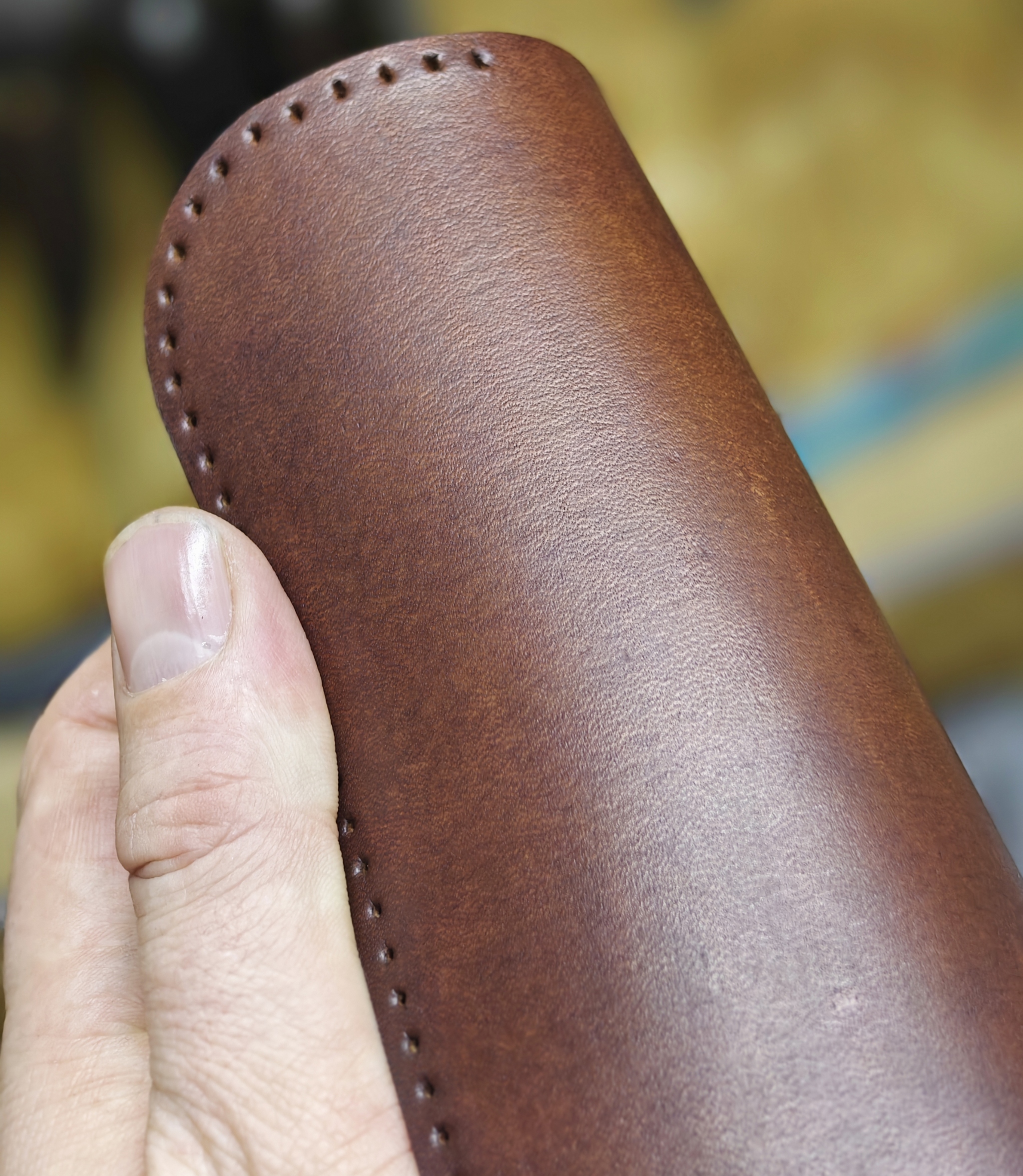 У меня в мастерской нашелся отрез буйволиной кожи растительного дубления в толщине почти 4 мм. Вот такой: