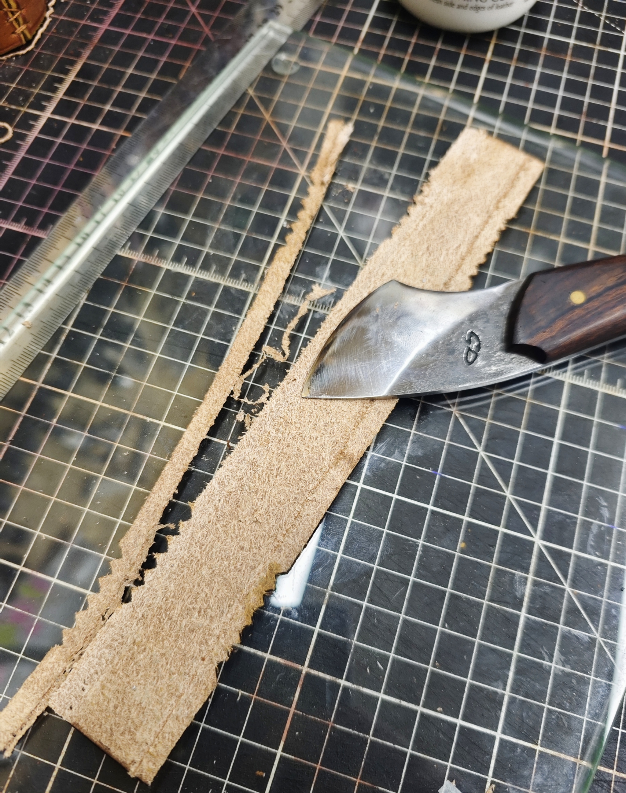 Затем делаю край ботана тоньше. Срезаю кожу специальным ножом:
