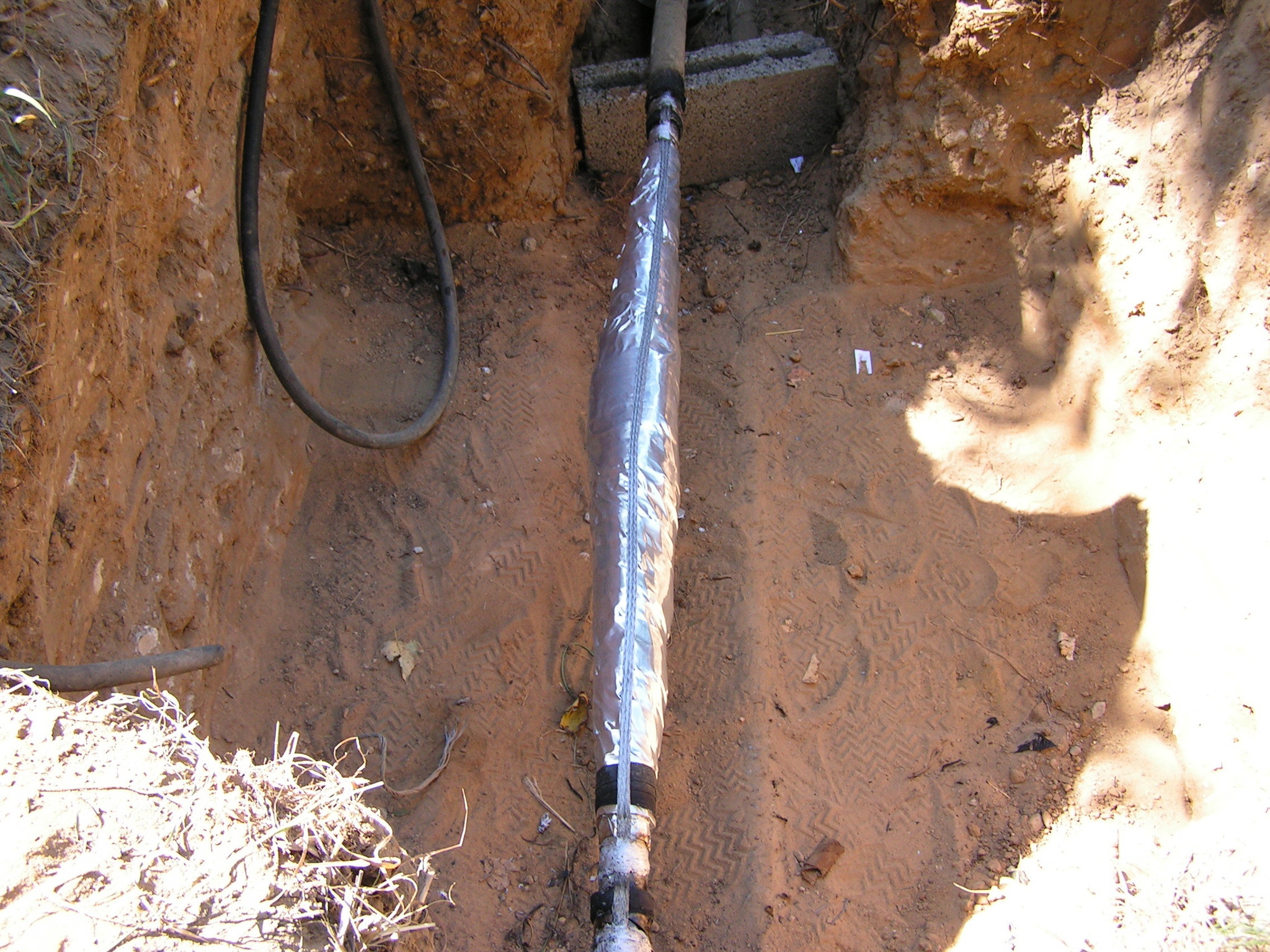 Размечаете трассу и формируете траншею. Глубина ее — 70-80 см, ширина при прокладке одного кабеля — 20-30 см.(штык лопаты). Если на пути трассы есть участи с повышенными нагрузками, например, дороги или близко расположенные корни крупных деревьев, то необходимо уложить кабель на этом участке в металлическую или толстостенную пластиковую трубу. Кабель укладывается на подушку из просеянного песка толщиной 10-15 см, и засыпается сверху таким же количеством песка. Не натягивайте кабель! Необходимо оставить естественные изгибы кабеля, они обеспечивают деформационный запас при сезонных подвижках грунта. Учитывайте этот момент при замере длинны трассы, стоит добавить 10% к расчетной длине линии. Крайне рекомендую использовать сигнальную ленту. Сейчас ее можно найти практически во всех профильных магазинах.