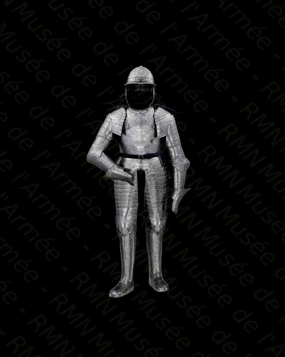 Полный доспех принадлежавший королю Франции Людовику XIV. Броня изготовлена в 1668 году, как дорогостоящий дипломатический подарок "королю-солнцу" от посольства Венецианской Республики. Доспех изготовлен в Брешии, братьями да Гарбаньяте. Собственно мастером-бронником Джованни Баттиста да Гарбаньяте и его братом, гравером и ювелиром Франческо да Гарбаньяте, о чем есть надпись на самой броне.