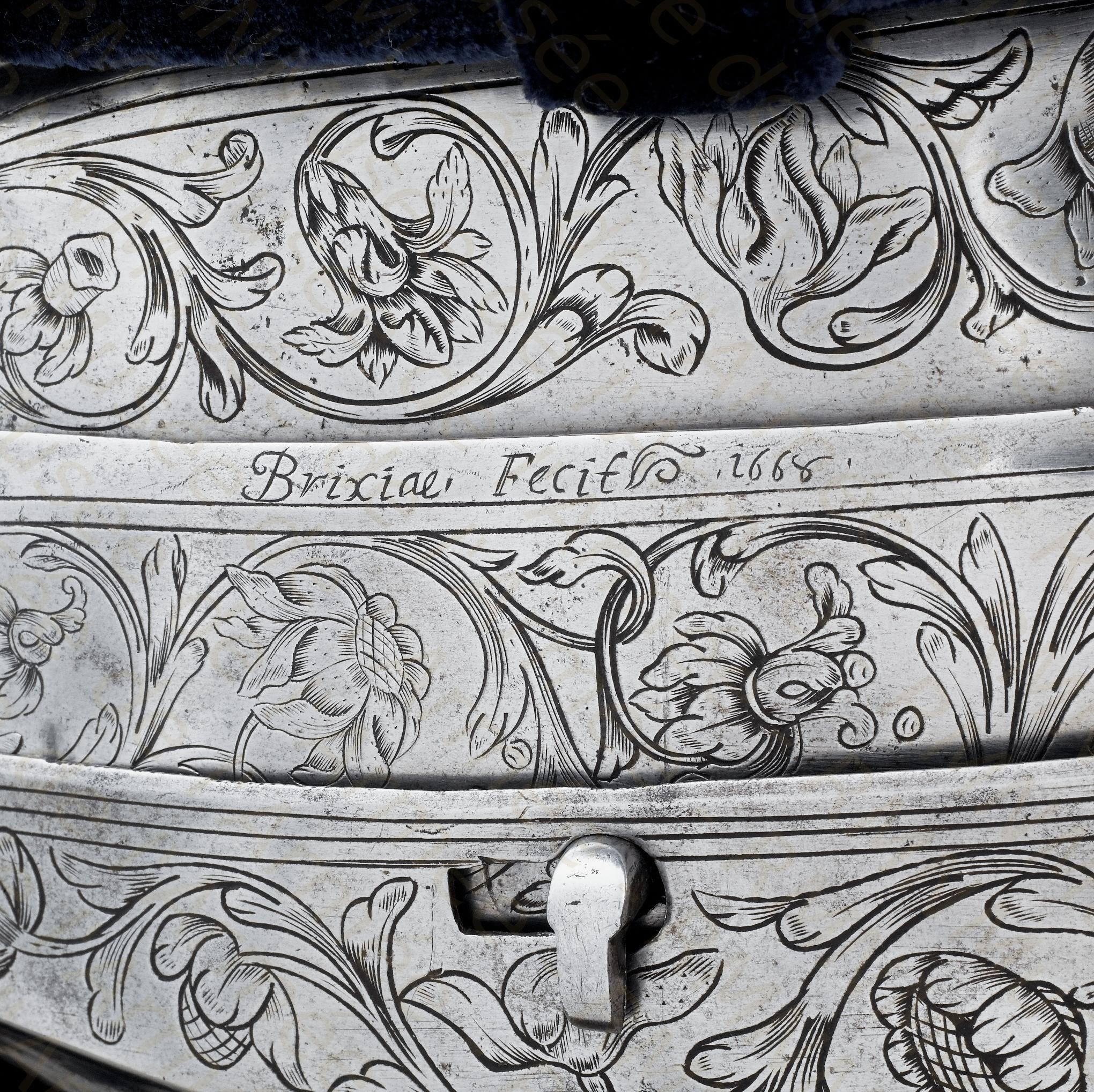 Броня 17 века поражает тщательностью отделки.В такой броне изображали на картинах государей и полководцев.Практически же броню уже не носили.Максимум кирасу поверх кружев и кафтана.