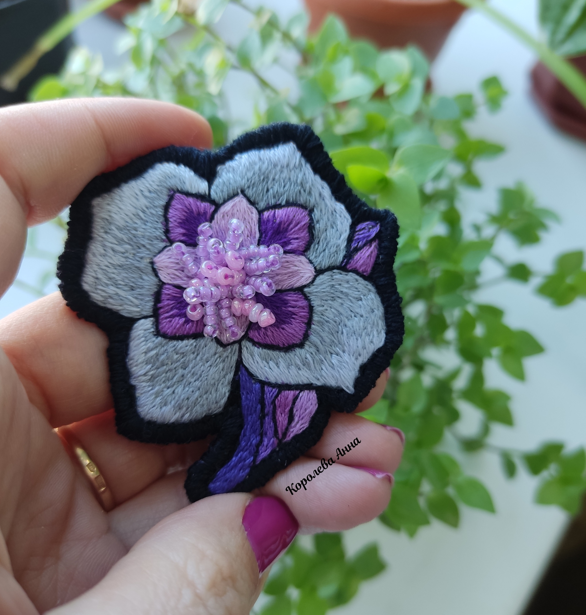 Брошь вышитая гладью вручную .
