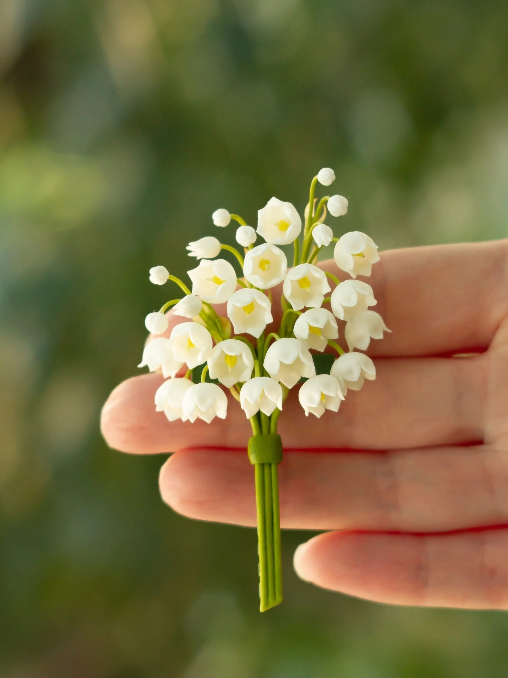 Полимерная глина самозастывающая. Проработала все мелкие детали, если присмотреться то увидите и чешуйки и пестик с тычинками)) использовала масляные краски. В лепке цветы ландыша очень трудоемкие.