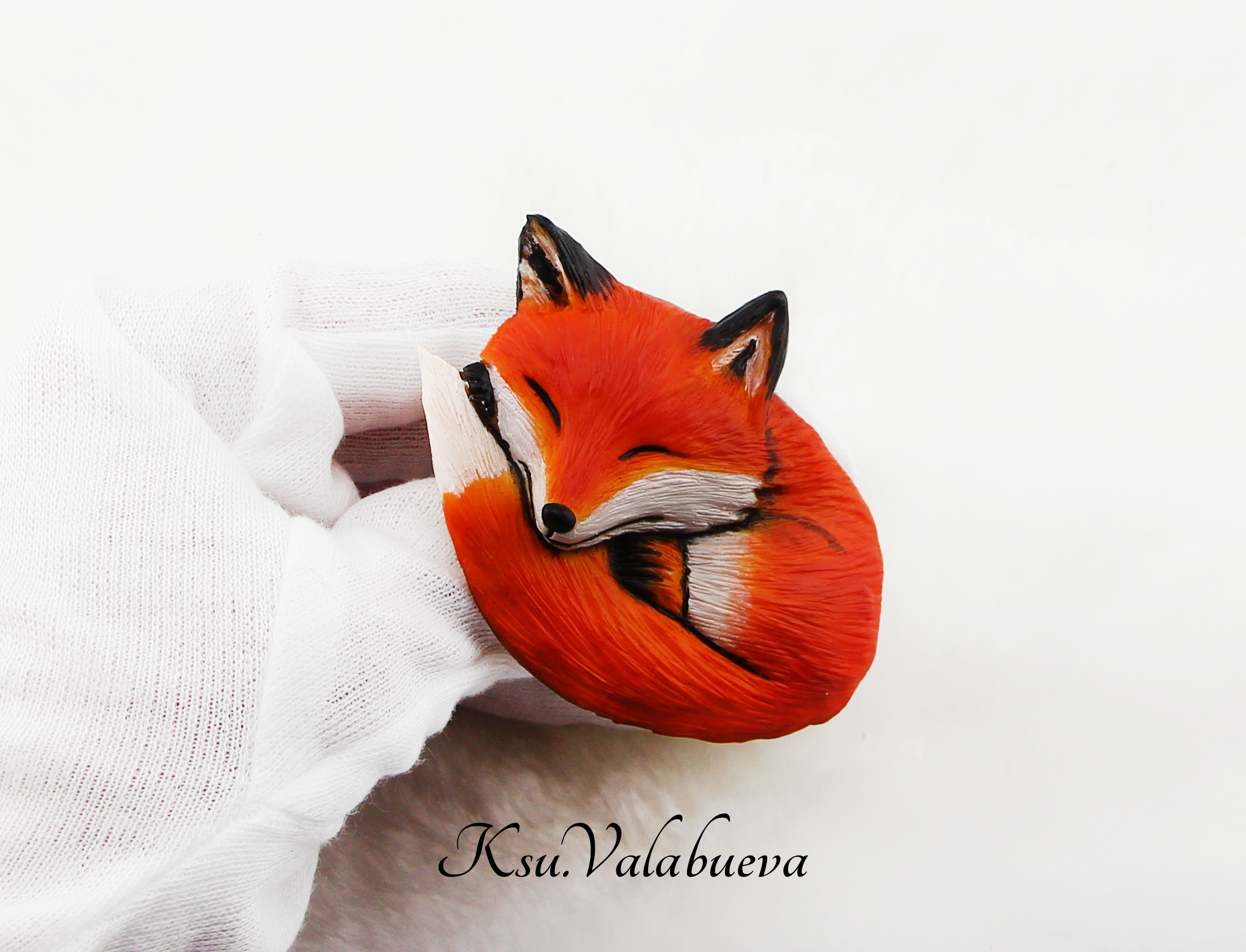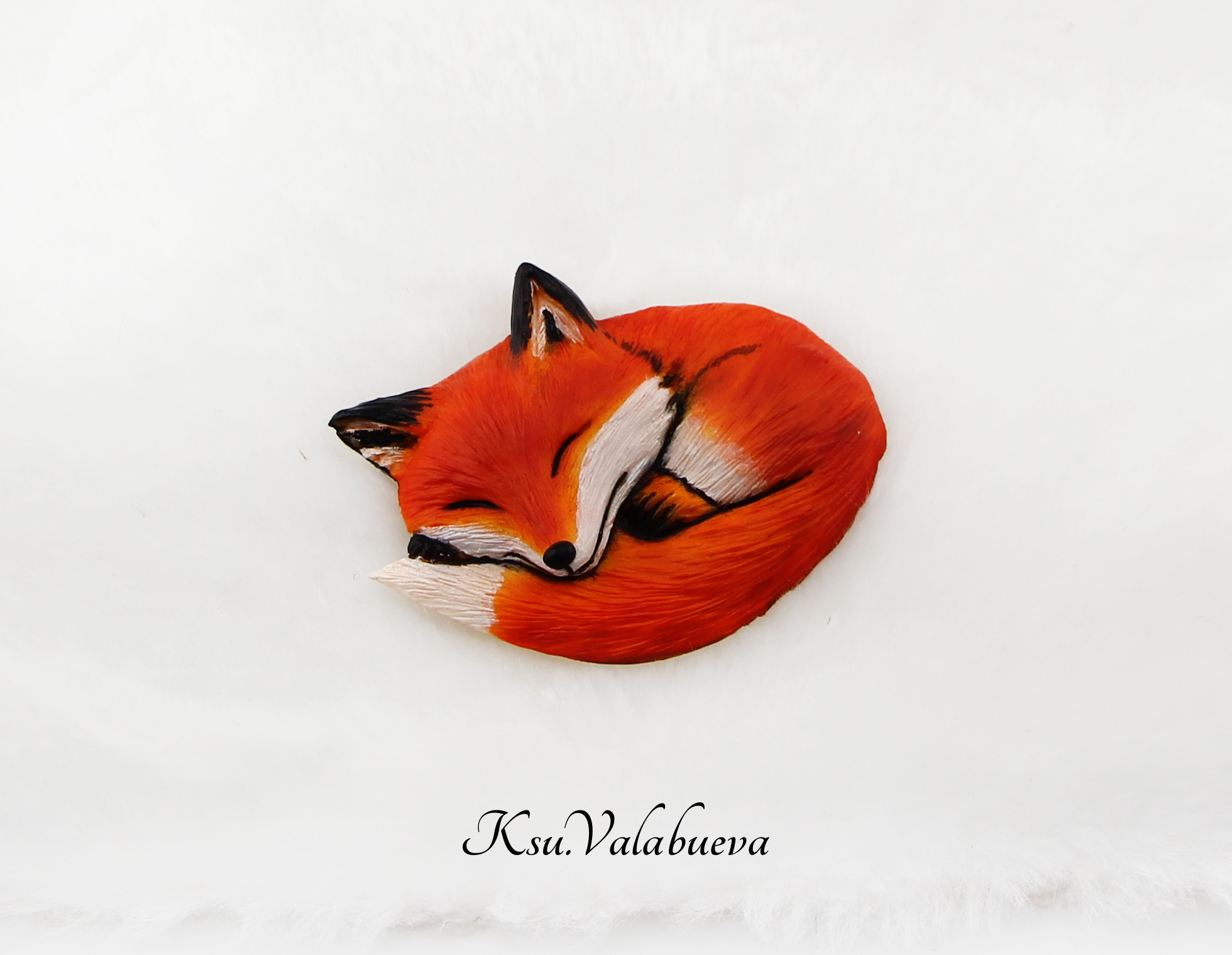 Всем привет! Сегодня покажу вам новую брошь, в виде спящего лисенка. Материал: полимерная глина, тонировка сухой пастелью, и роспись акриловыми красками. Брошь покрыта защитным лаком.