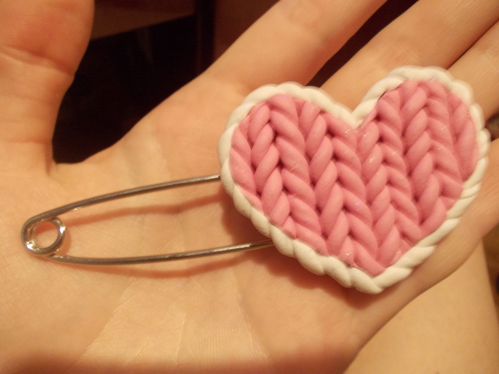 Завтра День Святого Валентина. В качестве подарка подготовила вот такую брошь, сделанную из полимерной глины в технике имитации вязания.