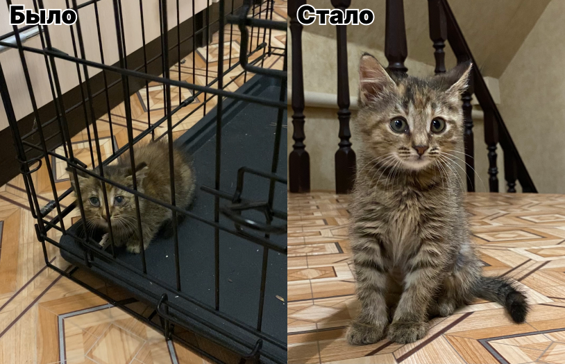 Теперь нам очень нужна для нее любящая семья, думаю, что было бы хорошо, если у вас уже есть кошка/кошки, которые ее примут, например, молодые. Причина: котенок очень активный, ей хочется прыгать, играть довольно много по времени; она любит других кошек, тянется к ним.