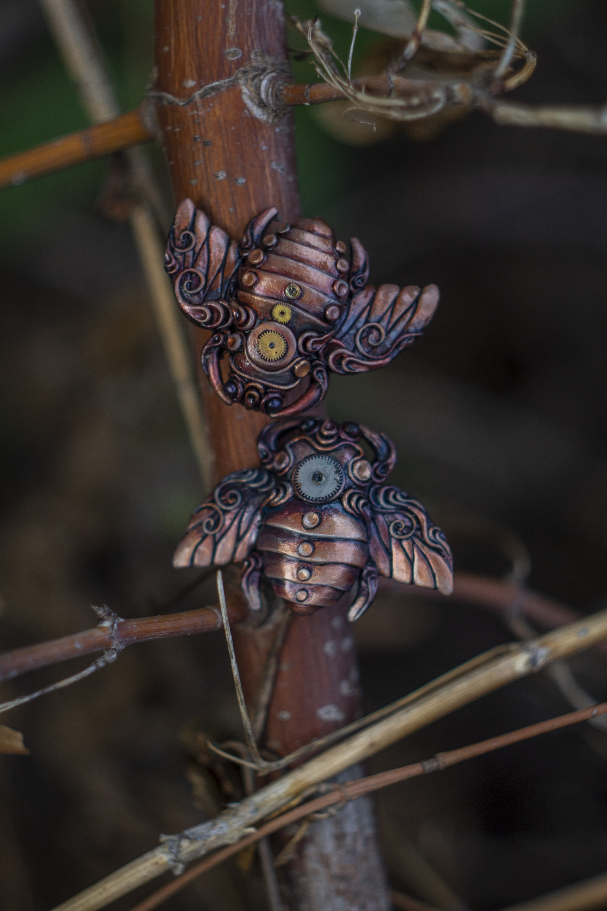Броши Мухожуки в стилистике биомеханика.