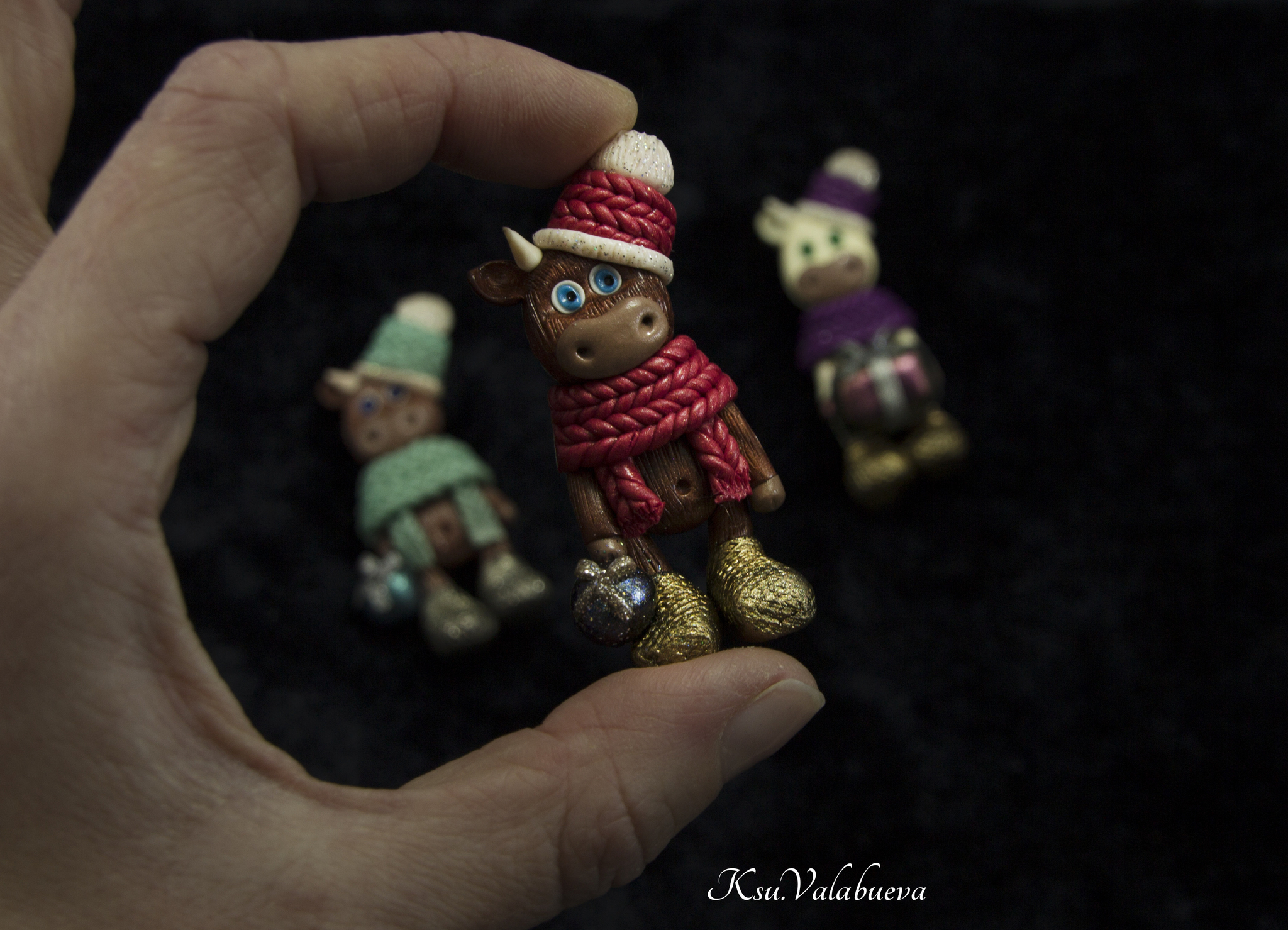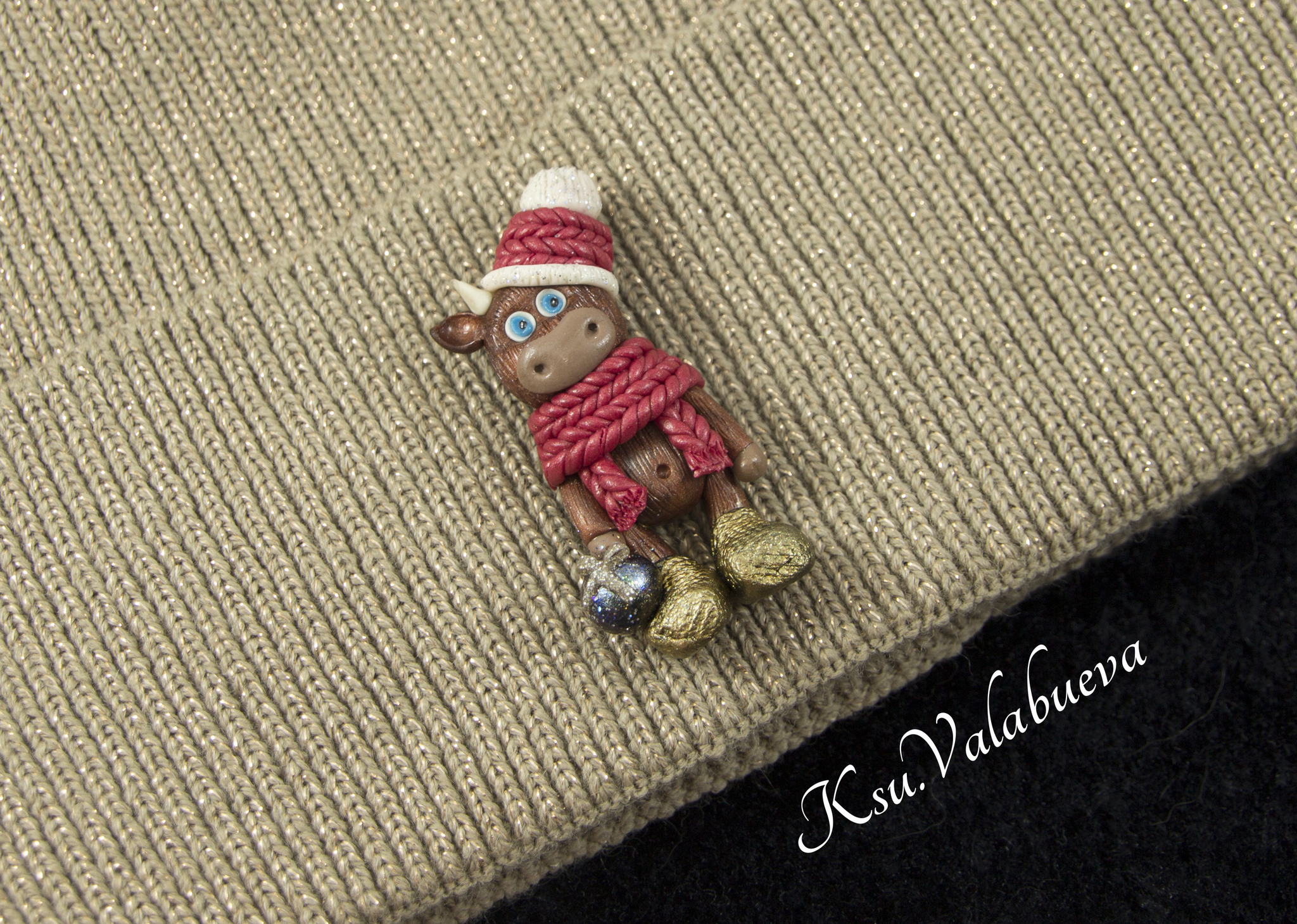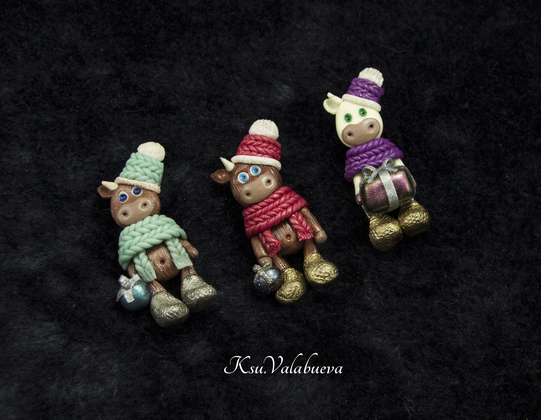 Всем привет! Сегодня хочу показать вам свои мини брошечки бычки, в длину чуть больше 5см. Очень милые брошки, символ нового года. Материал: полимерная глина, Фурнитура.