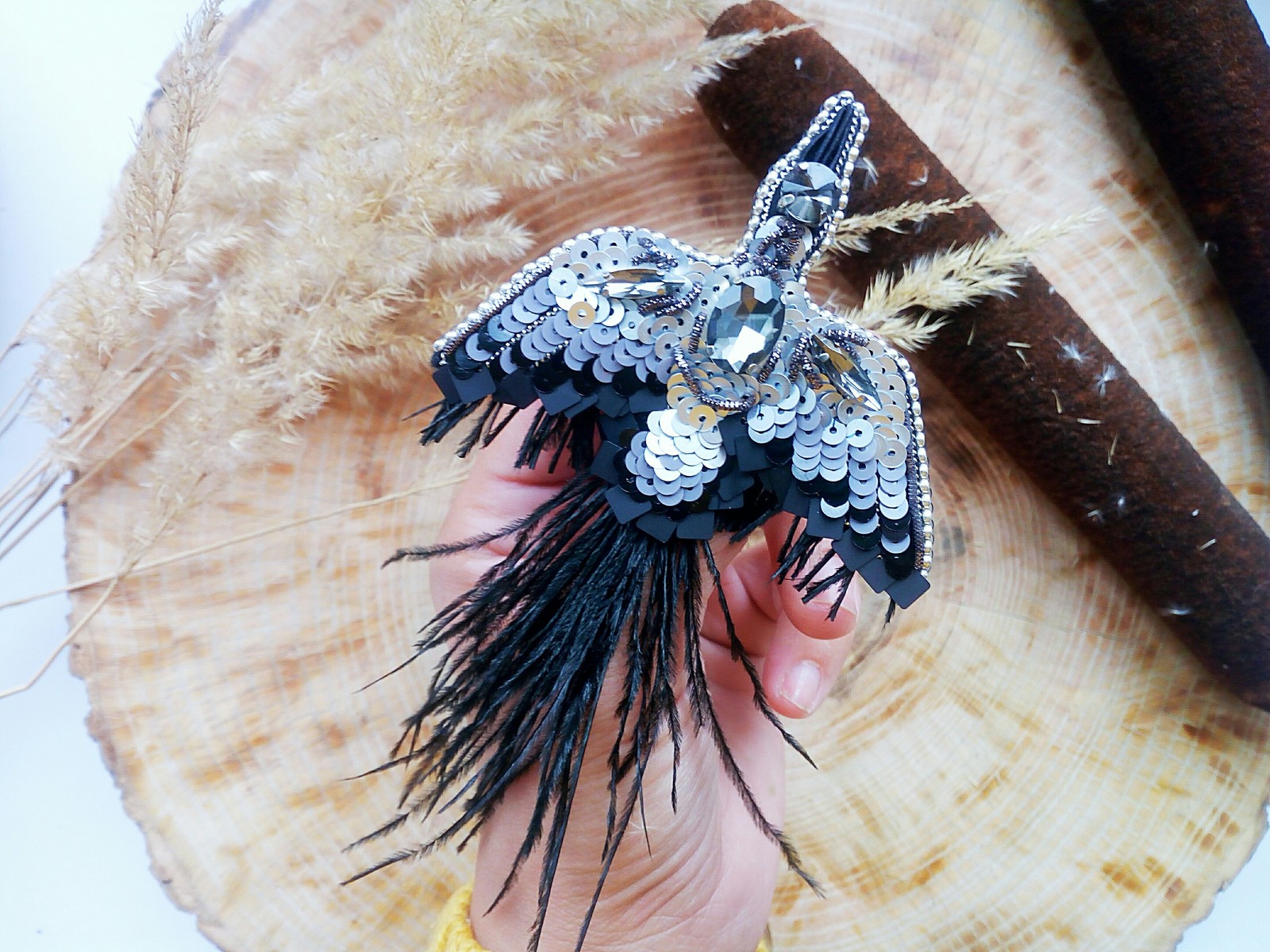 Брошки из бисера и пайеток.