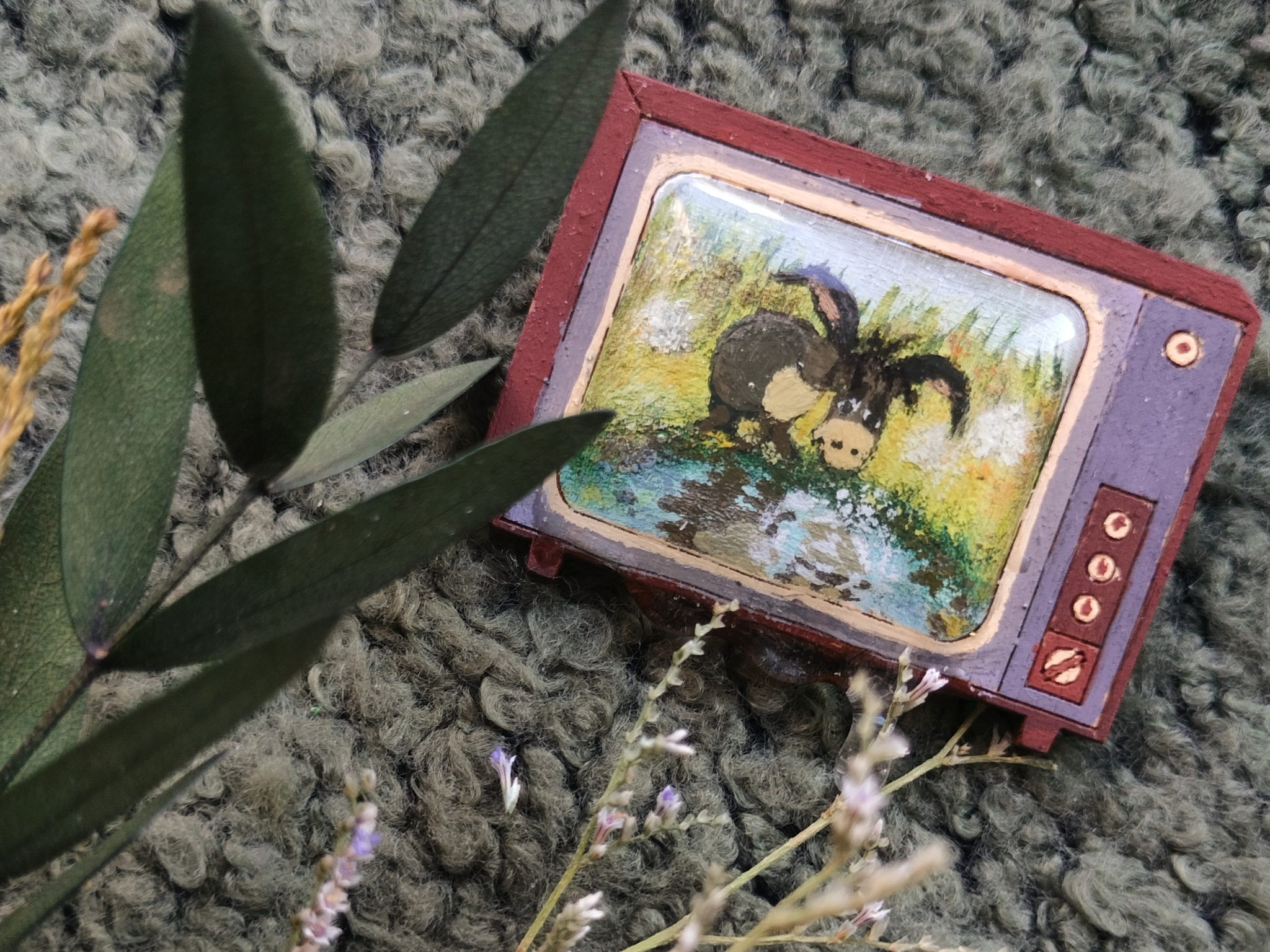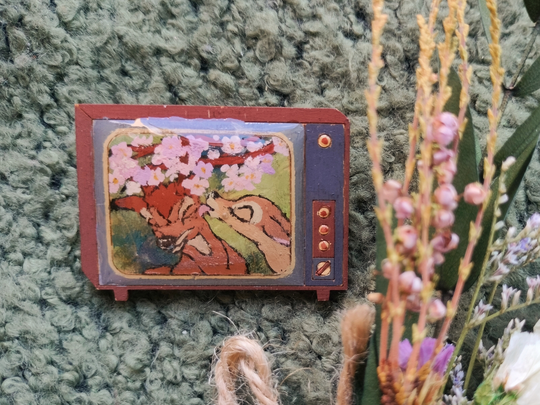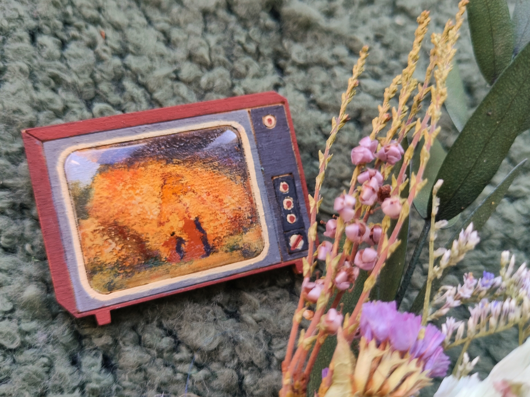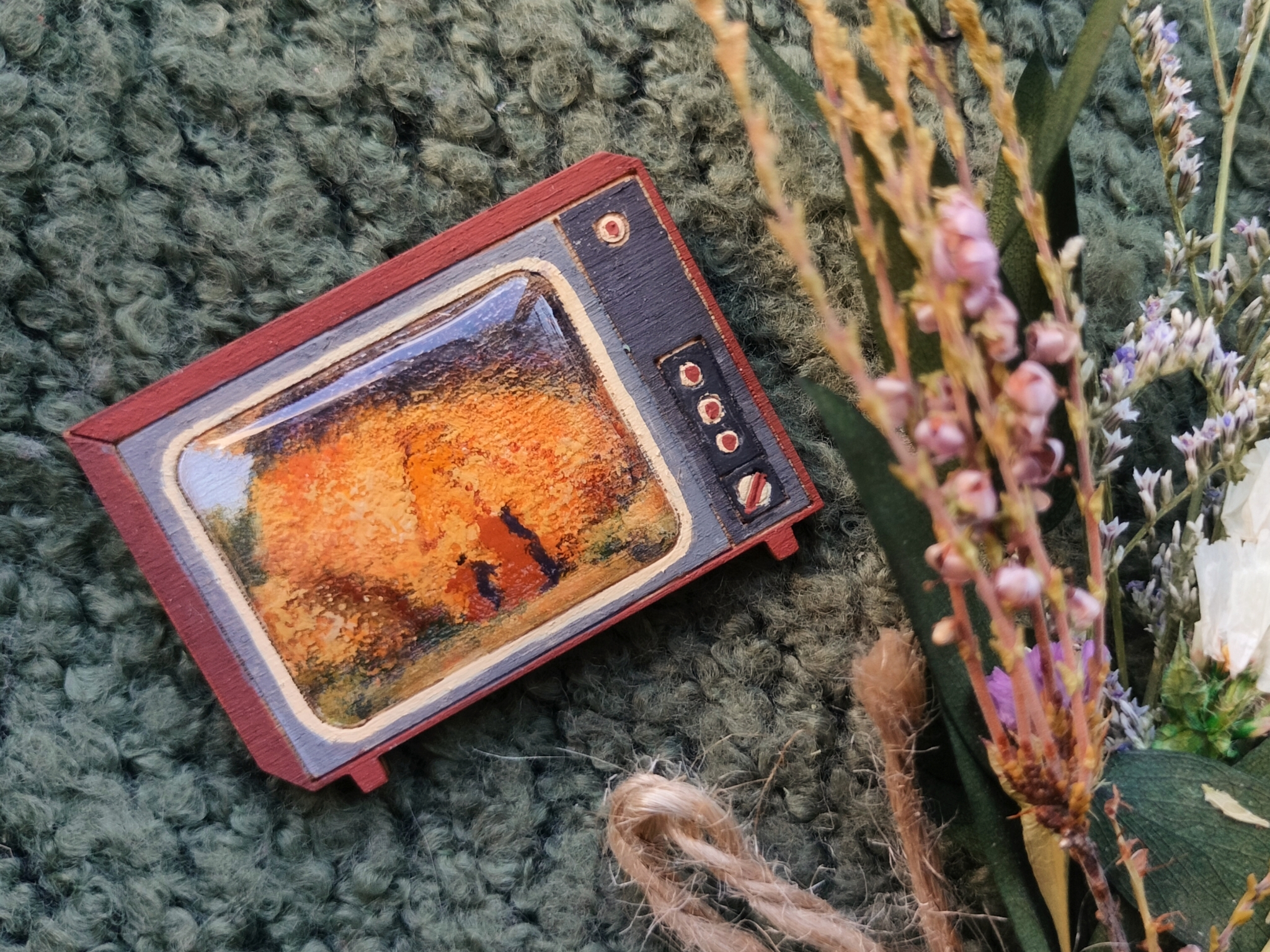 Добрый день! Продолжаю пробовать новые грани рукоделия, сегодня хочу показать брошки с росписью акриловыми красками и экраном из эпоксидной смолы) Сами телевизоры из фанеры, примерно 3×4.3 см.