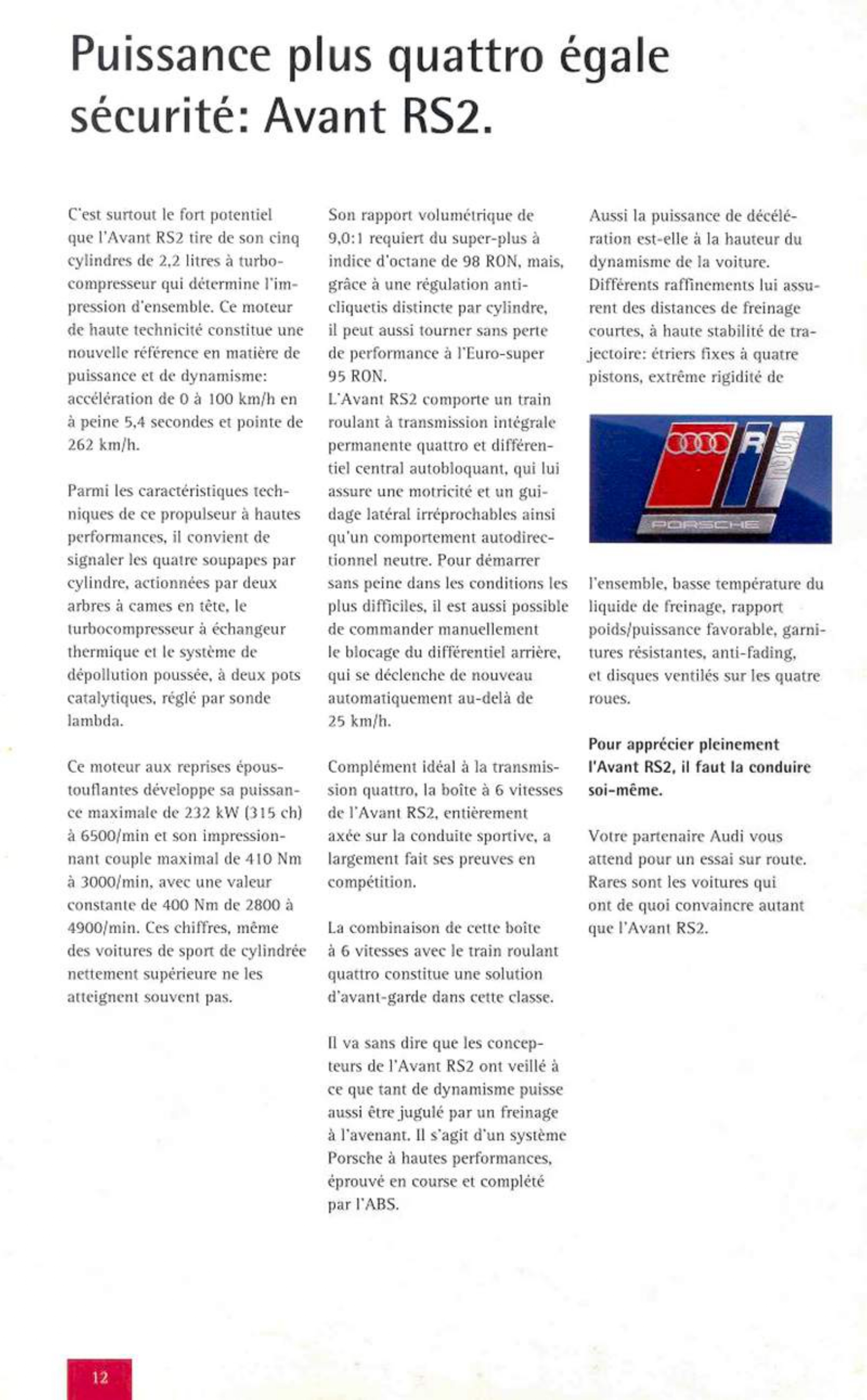 Брошюра Audi RS2 за 1994 год
