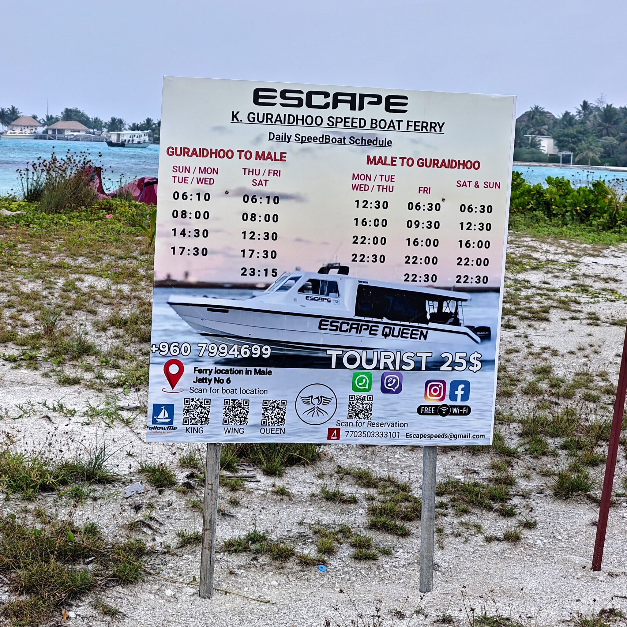 Стоимость спидбота между Мале и Гурайдо - 25$, а паром стоит 1,5$, вот же как дешево!
