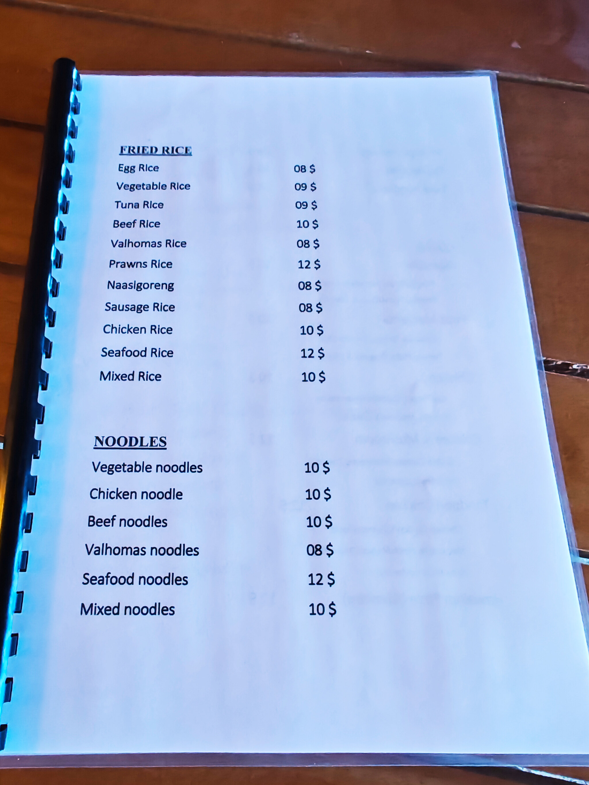 А вот для примера страница меню, чтобы сформировать понимание по островным ценам. Можно платить в руфиях (они считают по 19 за 1$), но выгоднее - баксами.