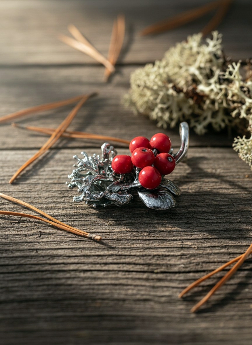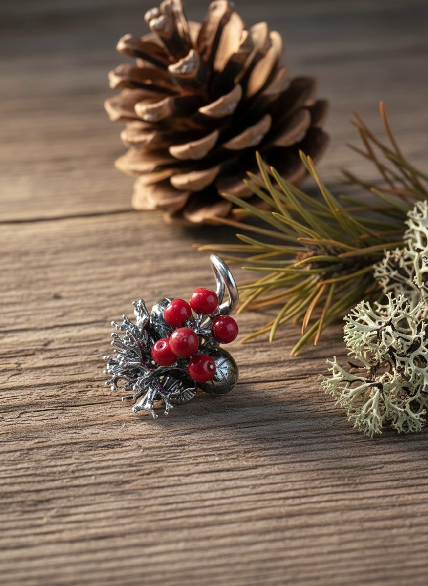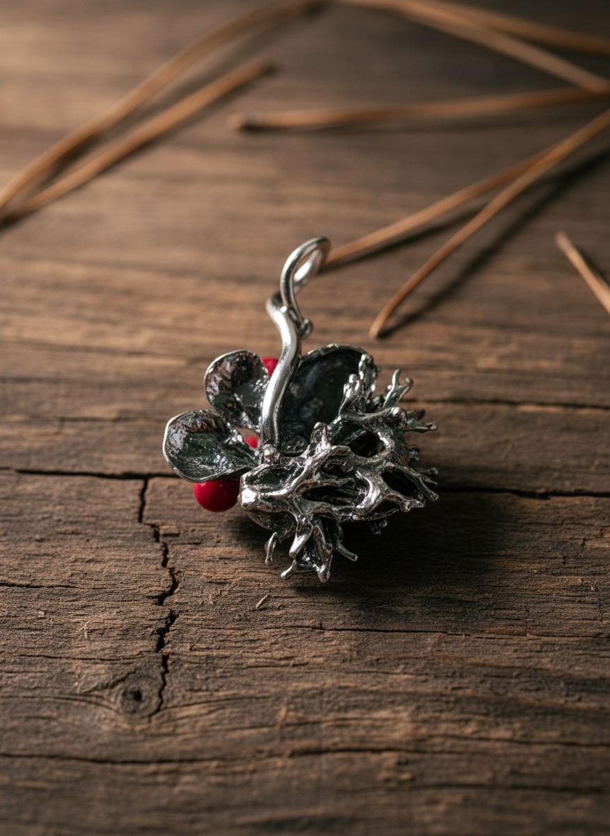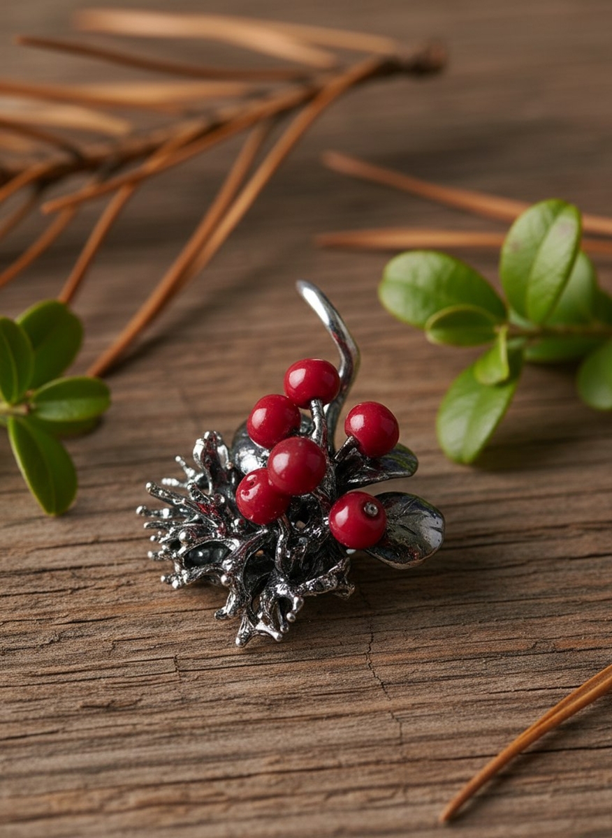 Кулон из чернёного серебра, ягоды сделаны из стекла.