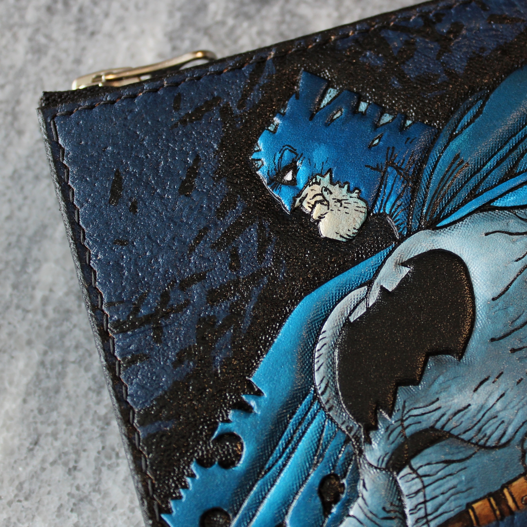 Всем привет! Попросили сделать кошелек с брутальным Бэтменом. На мой взгляд наиболее подходящий образ - Бэтмен Фрэнка Миллера. Взял его с обложки журнала #62 серии "Batman 2016".