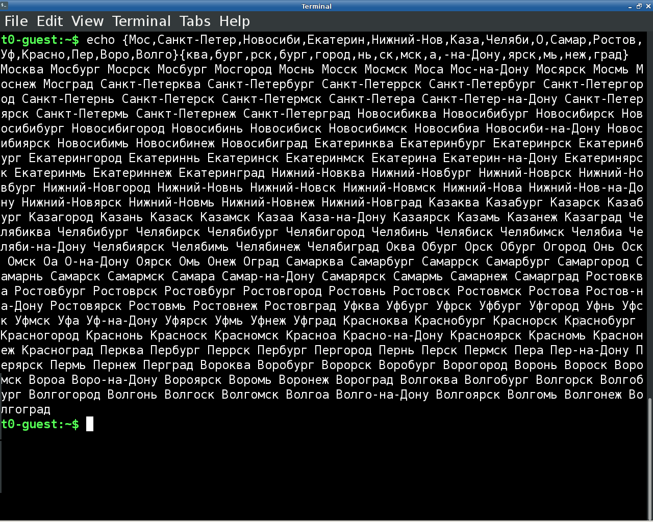 aleph87 6 лет назад Брутфорс городов русских Все города милионники. По мотивам поста https://pikabu.ru/story/chudesnyiy_byil_byi_gorod_6824735#co... [моё] Linux Города России