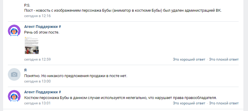 Сегодня тех. поддержка ВК прислала вот это сообщение: