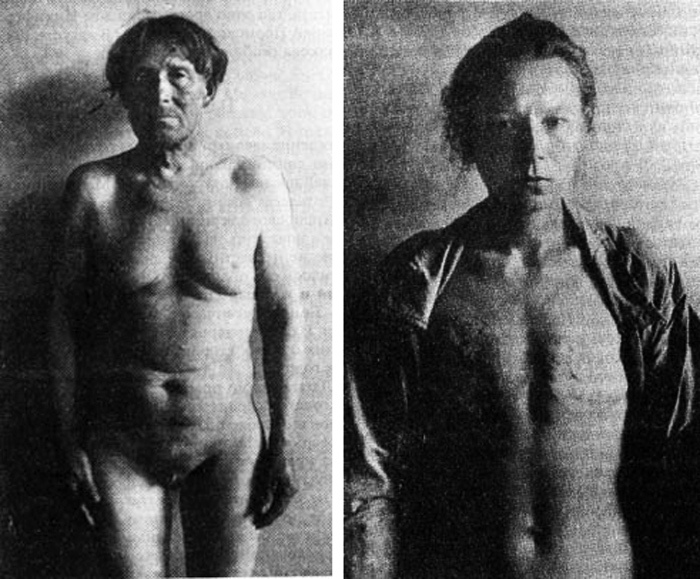 Что же происходит с человеком после подобного изувечивания? Последствия, обусловленные кастрацией, в организме мужчины в большой мере зависят от возраста, в котором производилась данная операция.И, разумеется, расы. При кастрации в детском возрасте до полового созревания отмечается недостаточное развитие полового аппарата. Как показали вскрытия трупов евнухов, семенные пузырьки и предстательная железа у них атрофичны, половой член мал и недоразвит. Волосы на теле скудны, на конечностях и у заднего прохода отсутствуют. В подмышечных впадинах и на половых органах волосистость мало выражена. В области лобка волосы растут по женскому типу. На голове у кастратов волосы густые, и они почти не лысеют (на это указывал еще Аристотель). Лицо безбородое, на щеках и на верхней губе небольшой пушок; в пожилом возрасте на подбородке и на углах губ отмечается рост бороды, как у некоторых старых женщин. После кастрации, произведенной до полового созревания, происходит усиленный рост костей в длину в результате длительного сохранения зоны роста костей. Рост длинных трубчатых костей влечет за собой несоответствие между длиной конечностей и туловища. Поэтому среди кастратов (евнухоидов) довольно часто встречаются люди высокого роста. Череп кастратов мал, челюсти сильно развиты, надбровные дуги выпячены, корень носа запавший, выступ затылочной кости сглажен. Таз вследствие роста костей широкий. Голос высокий, к старости - более низкий. Гортань останавливается в своем развитии, выступ ее (адамово яблоко) сглажен, так что кадык похож на женский. Выражение лица обычно постоянно усталое, безразличное, темперамент очень спокойный и вялый (может быть этим была обусловлена кастрация строптивых рабов). Если кастрация была проведена в зрелом возрасте, то половое влечение сохраняется в течение длительного времени, часто сохраняется даже способность к половому акту (тут работают гормоны желез, расположенных внутри тела).