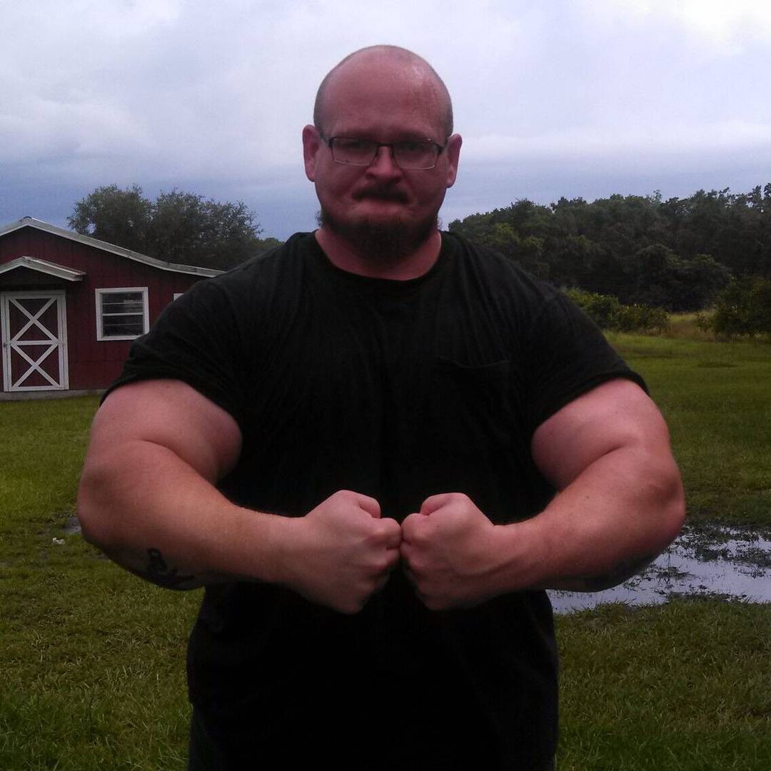 Мужик поднимает камни Атласа, приседает со штангой, рвёт колоды карт, сгибает гвозди, таскает камни от 100 кг и выше, мешки с песком, поднимает всё это над головой, махает гирями, гантелями и т.д. Не знаю, какие у него силовые.