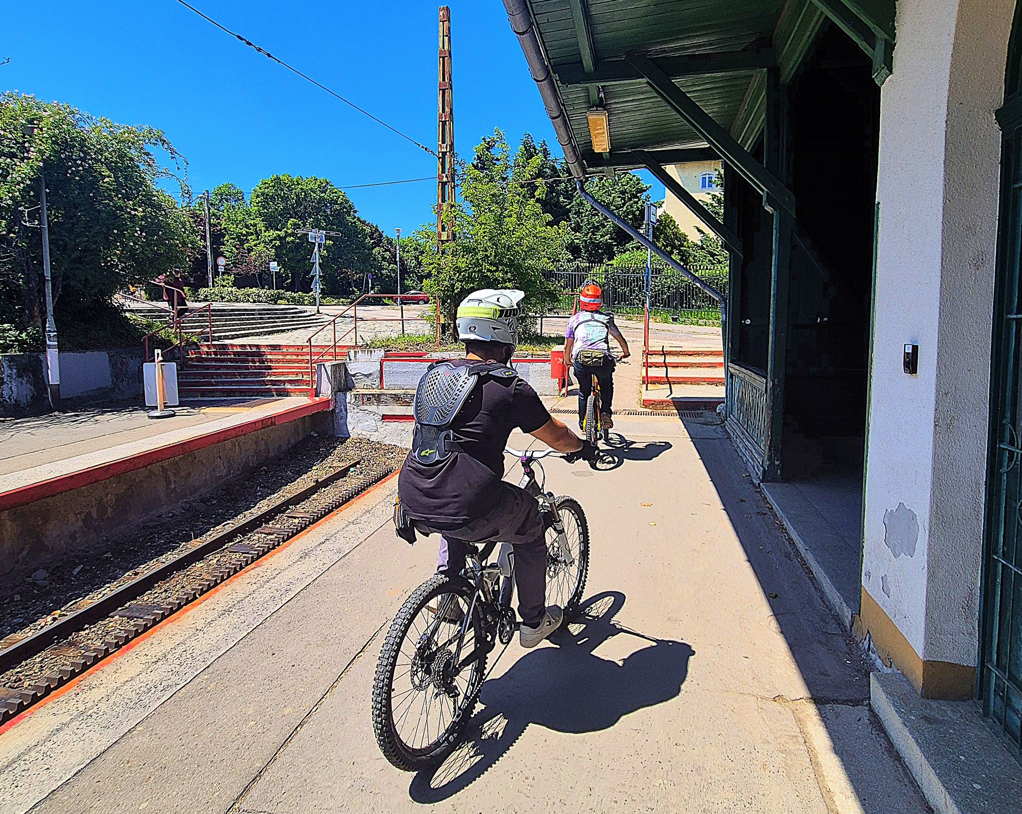 По этой железной дороге велосипедисты вверх устремляются. Говорят, раньше здесь отряды пионеров поднимались, потому что ещё выше Пионерская железная дорога работающая, но о ней позднее.