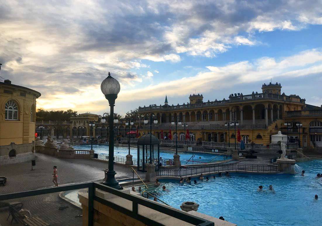 Я сходил в легендарные будапештские термальные купальни. Вода была +38°, воздух в тот день +12°. Внутри было около 6 саун на любой вкус: в одной воняло потными носками, в другой мятой с портянками, ещё в одной давали снежок из искусственного снега для растираний. Бассейн, который на улице, очень красивый, но несмотря на воду плюс сорок, все равно было холодно, тк приходилось бегать внутрь здания.